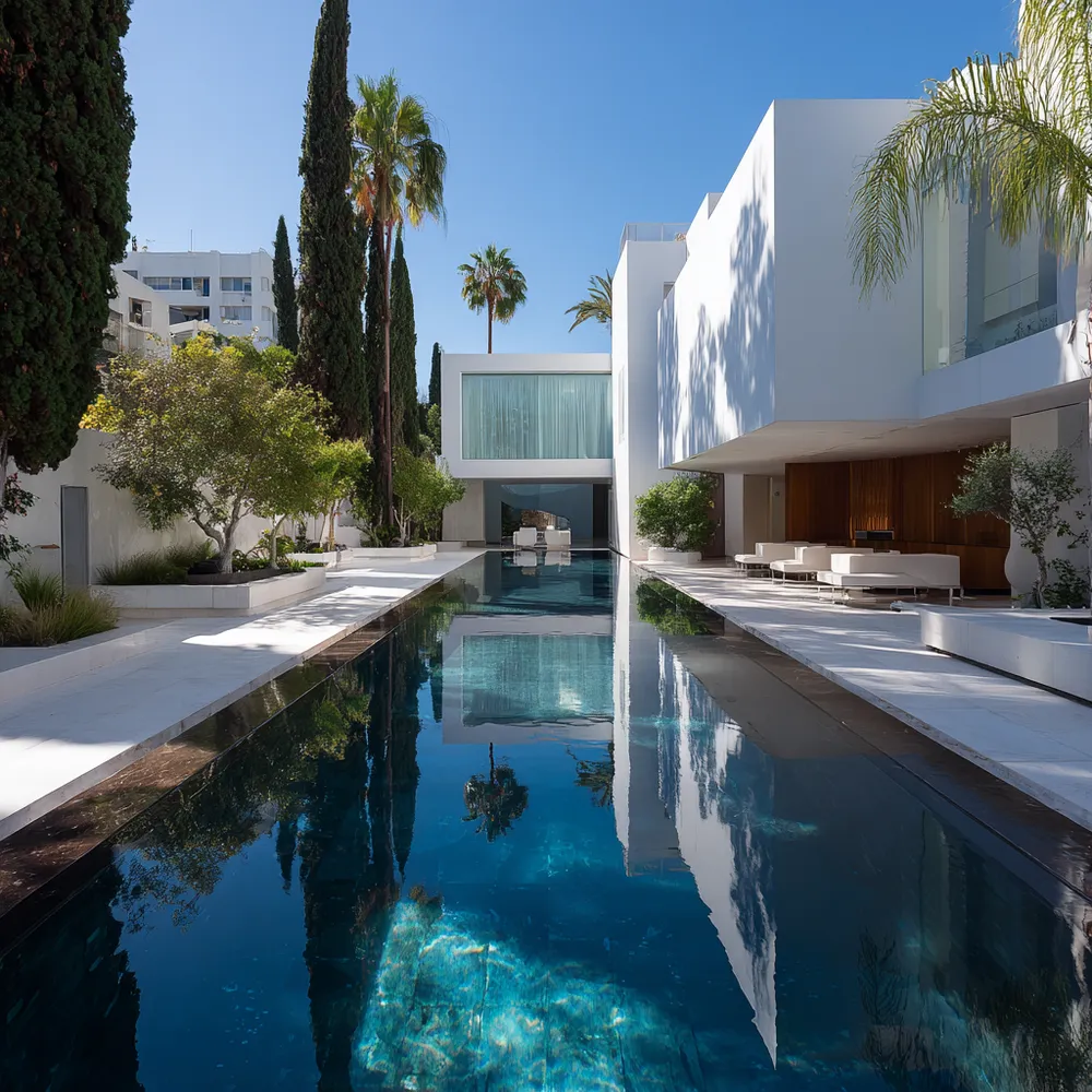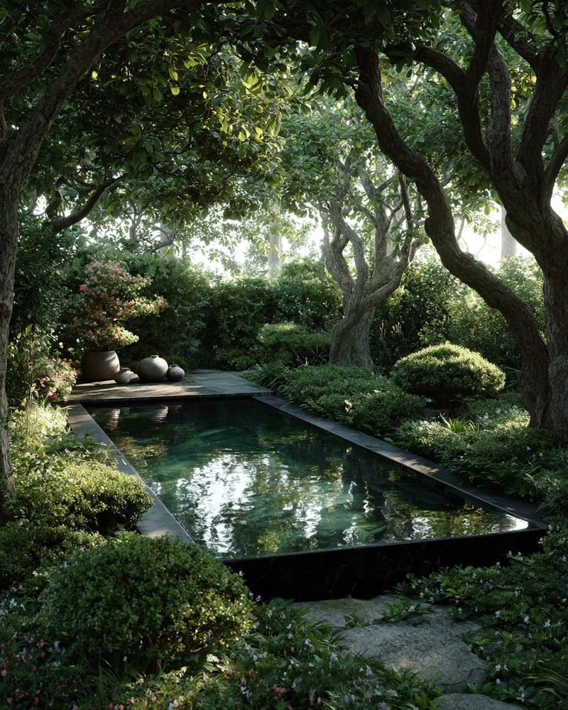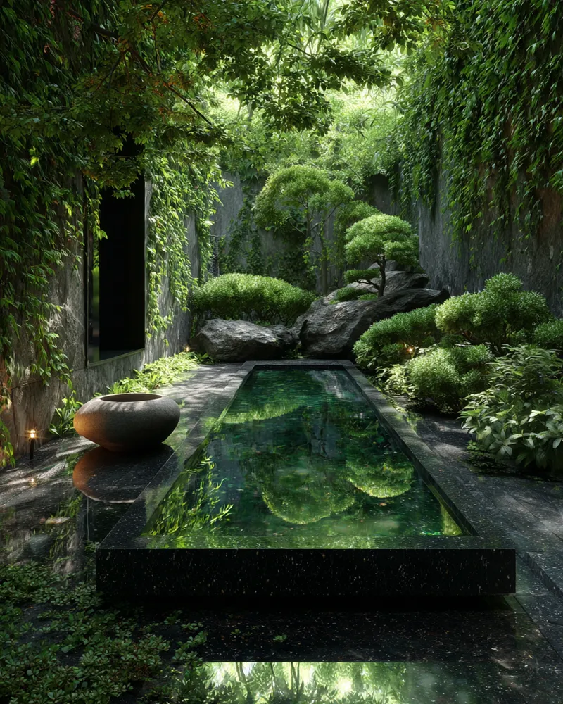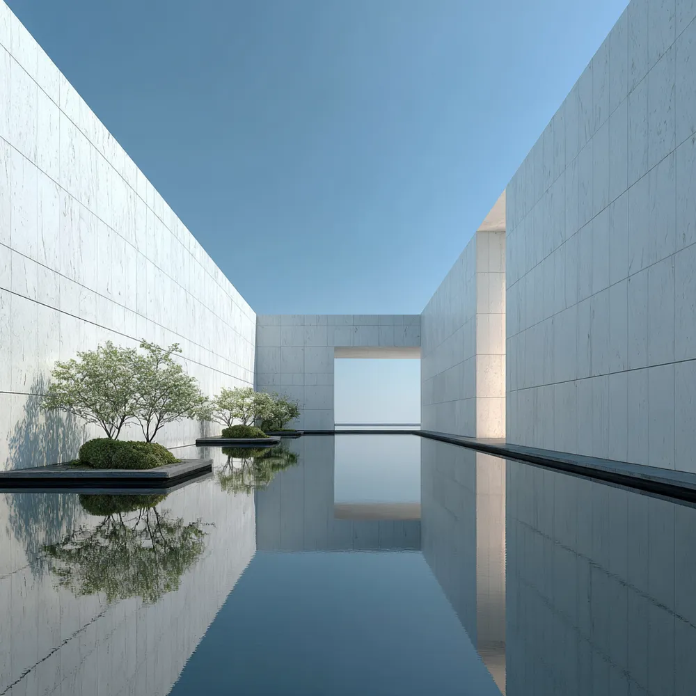 * **Reflecting Pool:** A still, minimalist pool that mirrors the sky and surrounding plants.