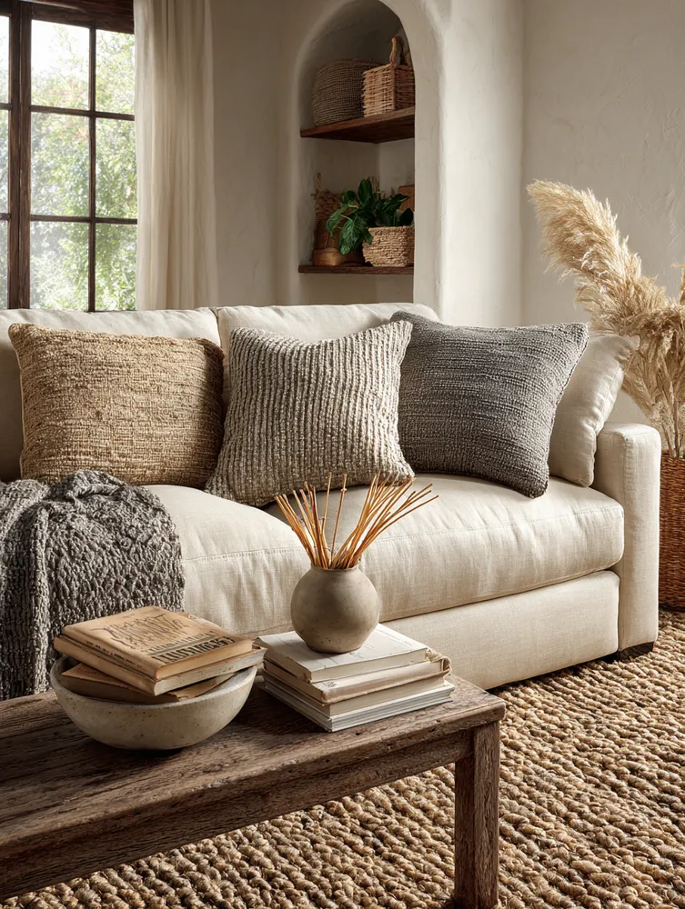 * **Layered Neutrals:** Think soft creams, warm greys, and subtle earthy tones in textiles like linen sofas and wool rugs.