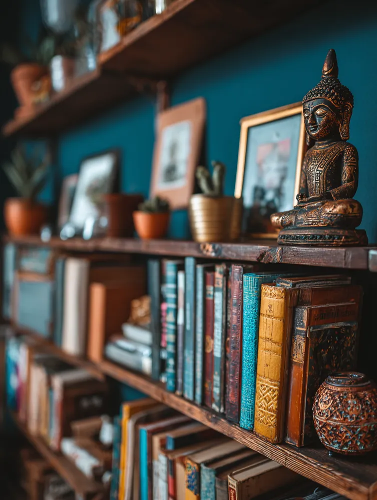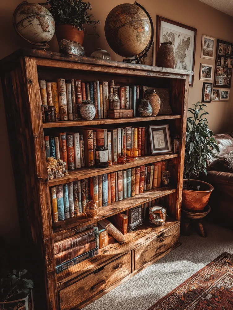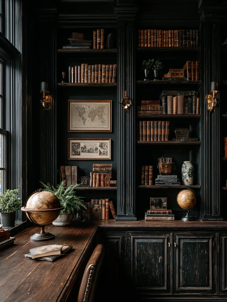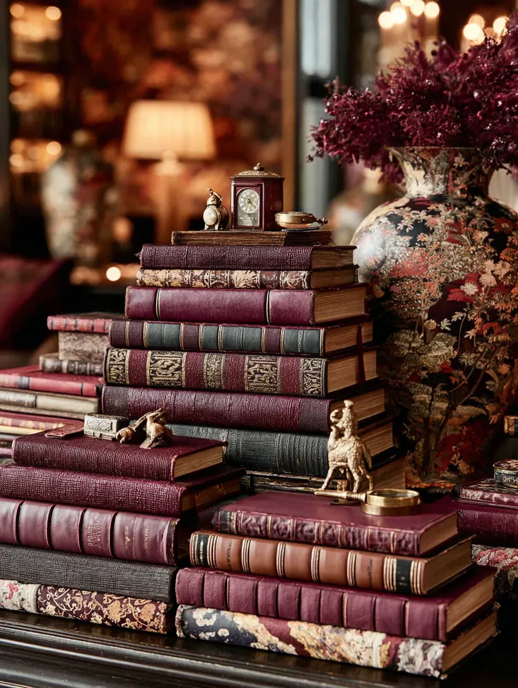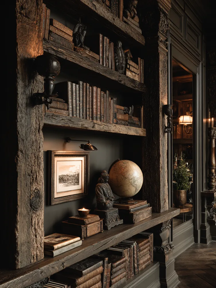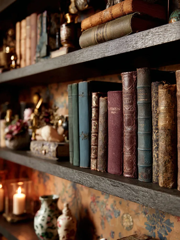 • Accents: Pair books with literary-themed curiosities like inkwells, globes, or vintage globes.