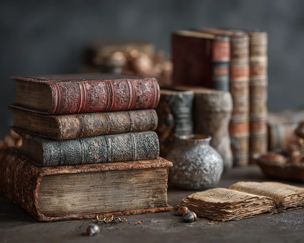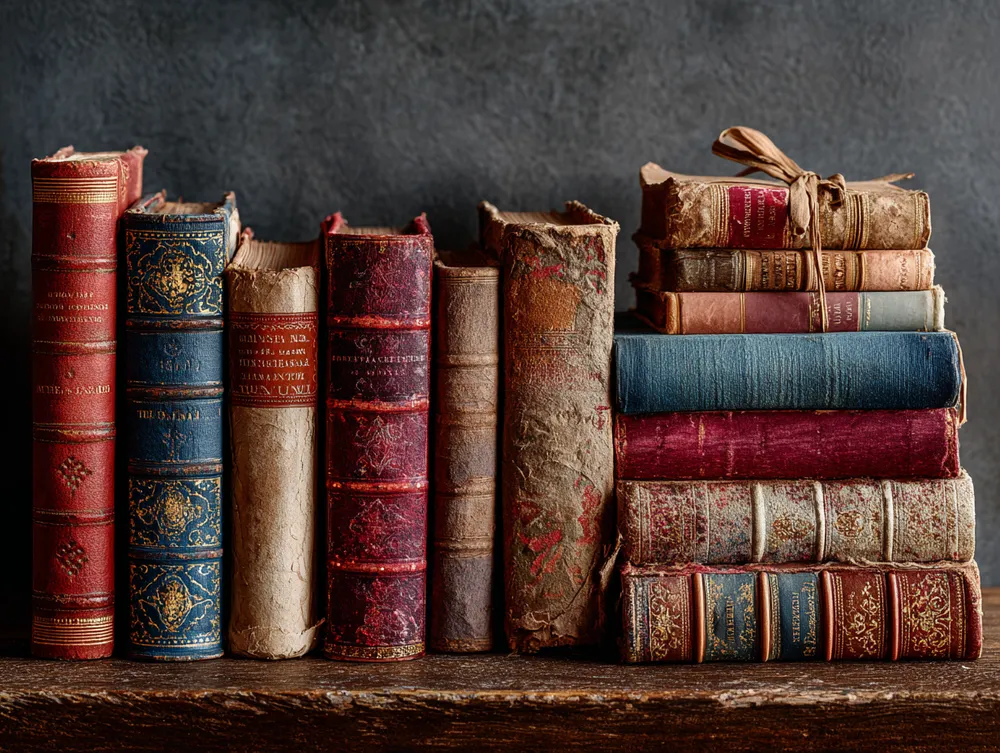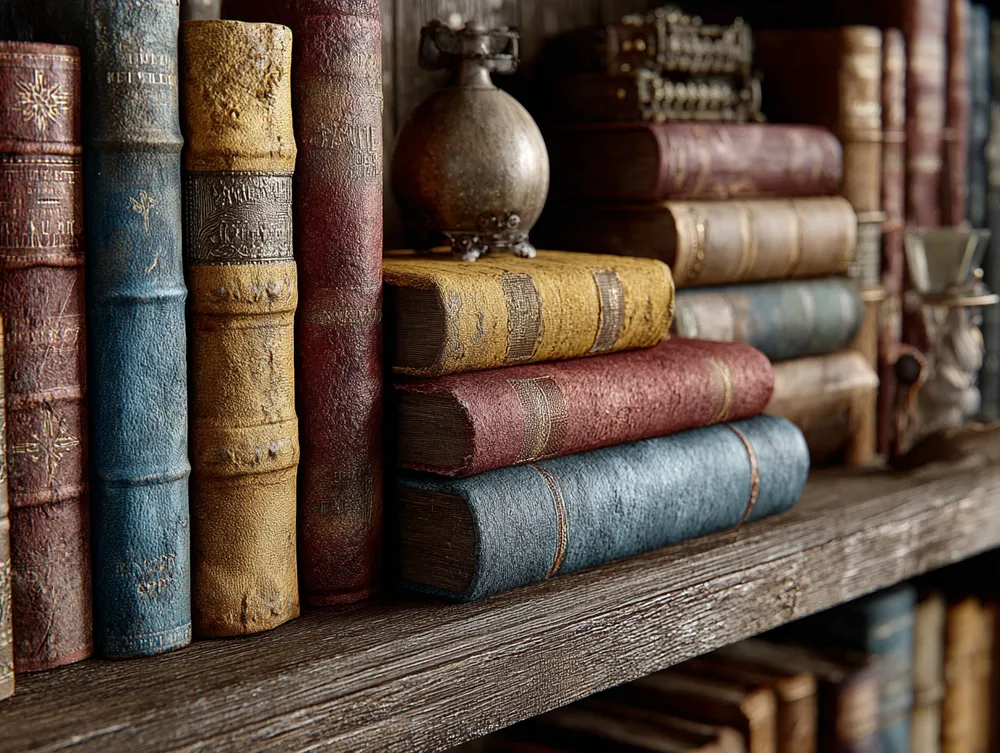 • Grouping by Color/Texture: Create visual flow with similar spine colors or binding materials.