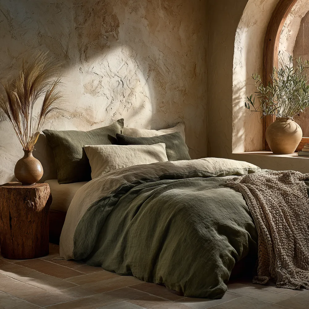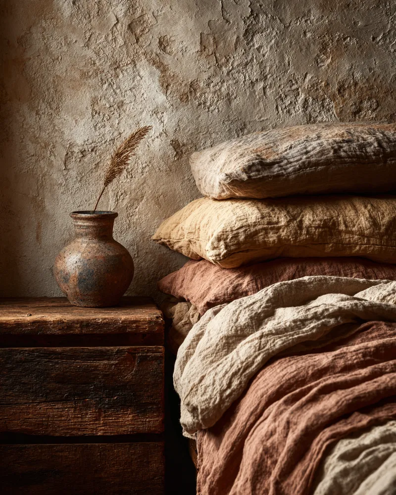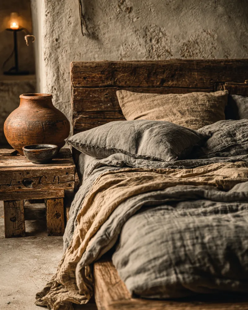 Transform your sleep space into a peaceful retreat. Save this post for inspiration! 🍃 #wabisabi#wabisabibedroom#bedroomideas#calmspace#minimalistbedroom#naturallinens#earthytone#homedesignideas#sleepsanctuary#serenedecor