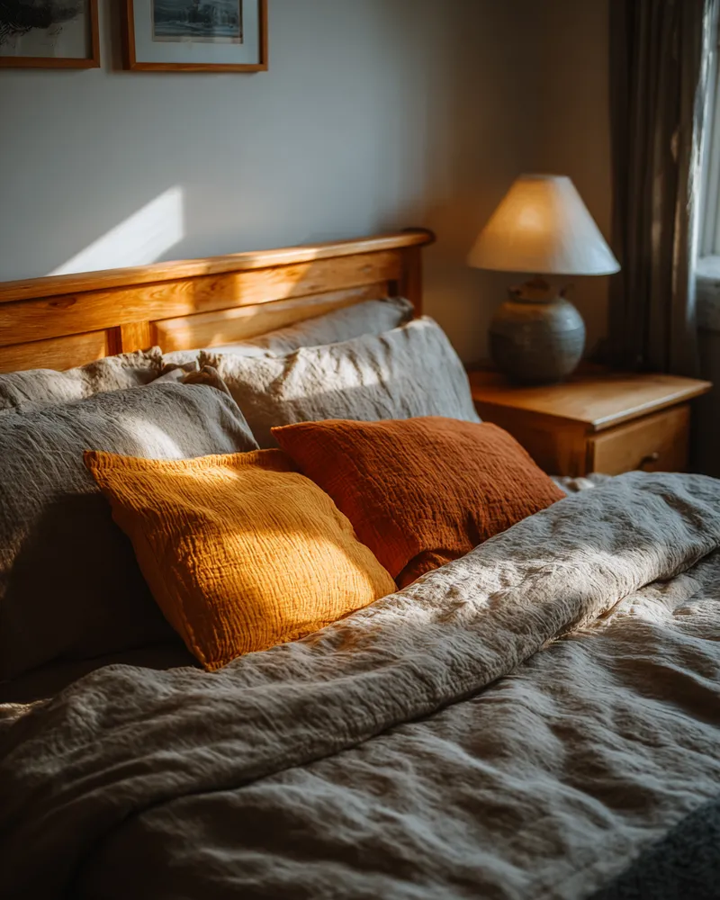 * **Natural Linens:** Opt for bedding made from linen or cotton that has a slightly rumpled, lived-in look.