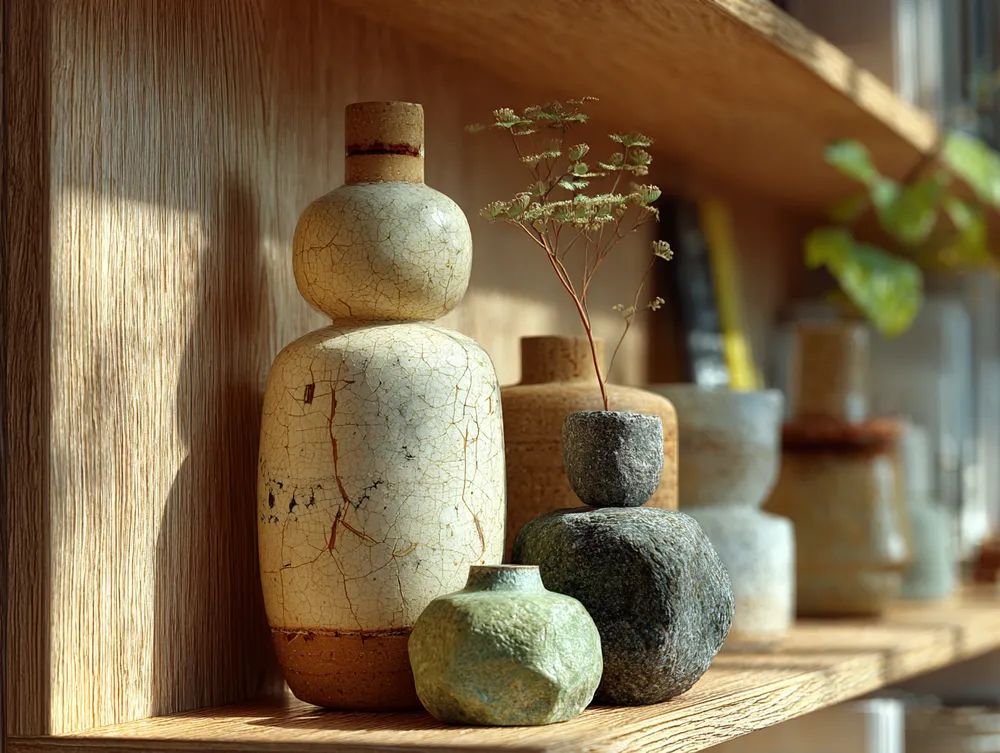 Wabi-Sabi displays celebrate objects that carry stories and show signs of use. Shelves become curated vignettes of authentic beauty.
