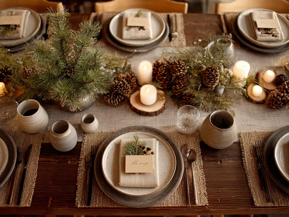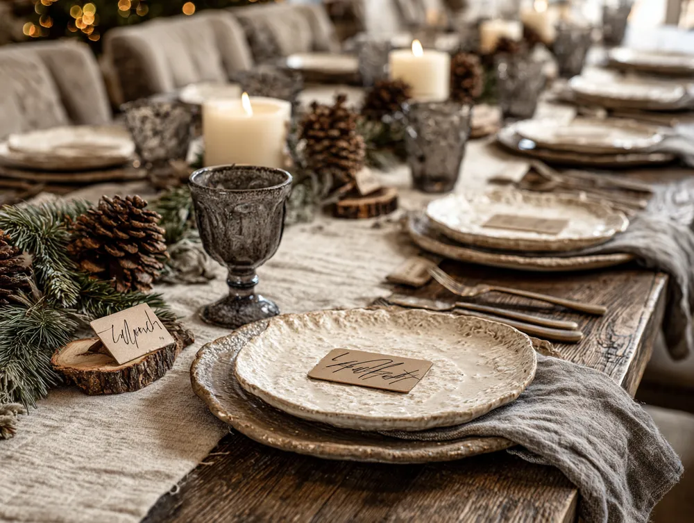 * **Linen Napkins & Runners:** Use unbleached linen in earthy tones that feel soft and slightly rumpled.