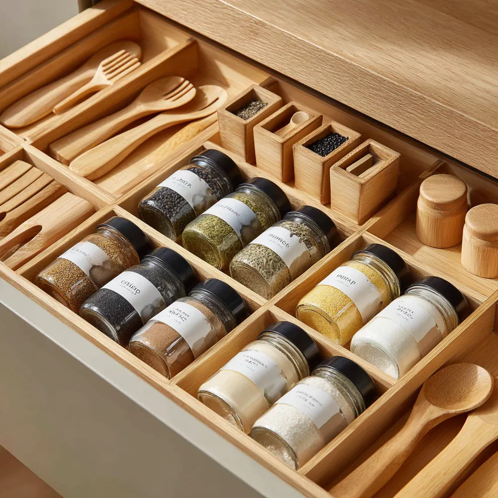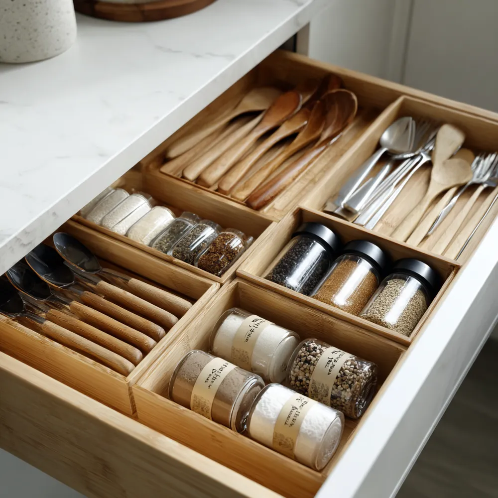 * **Hidden Storage:** Smart cabinet organizers keep clutter out of sight.