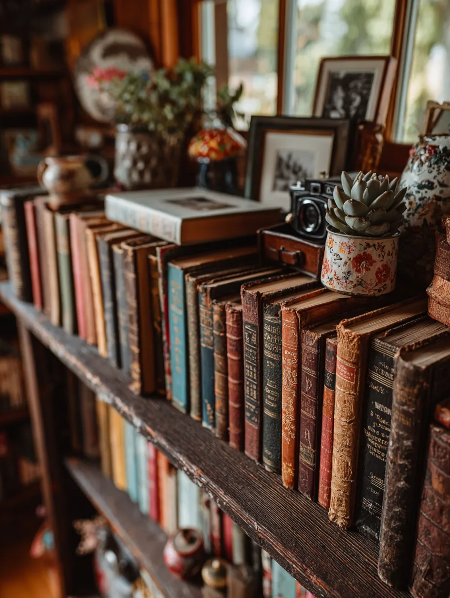 * **Mix books and objects:** Balance hardbacks, paperbacks, and cherished vintage finds.