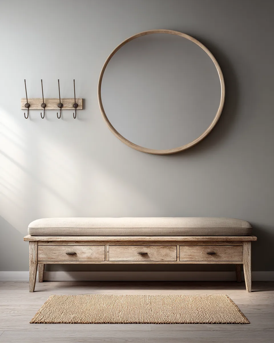 * **A functional bench:** With vintage charm, for easy shoe removal.