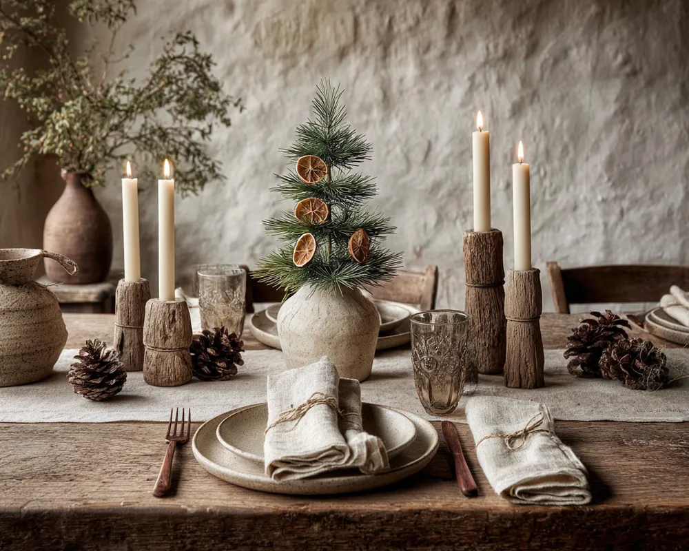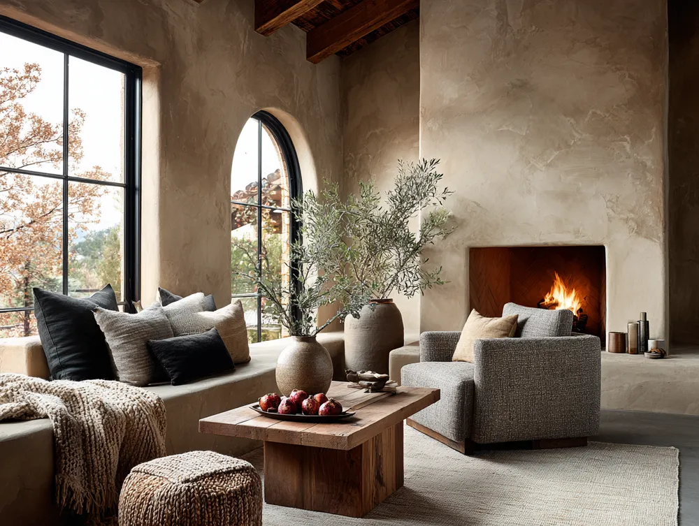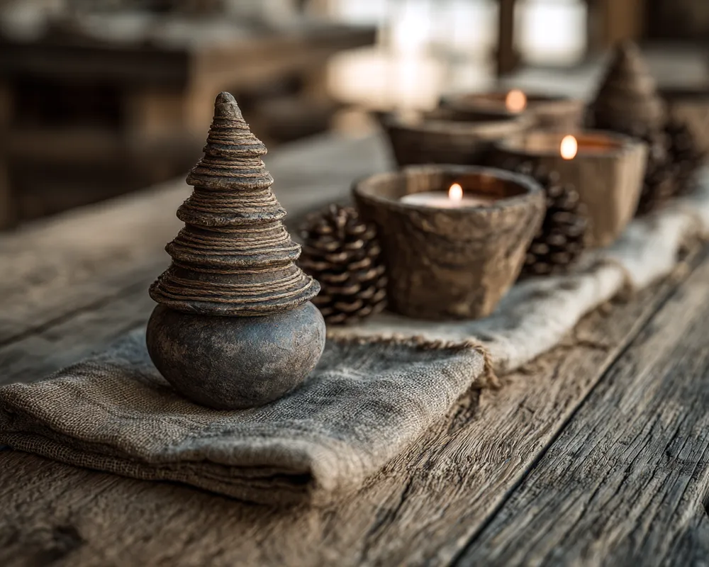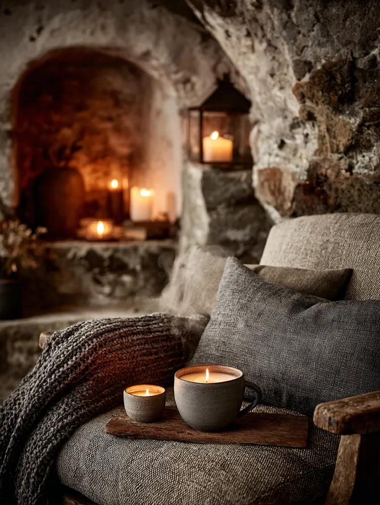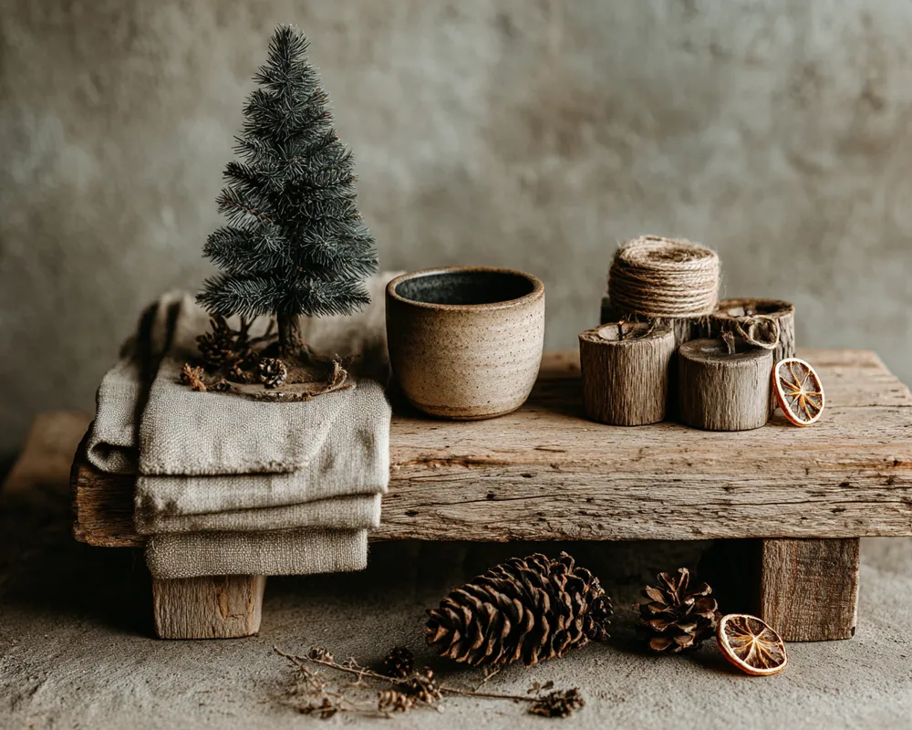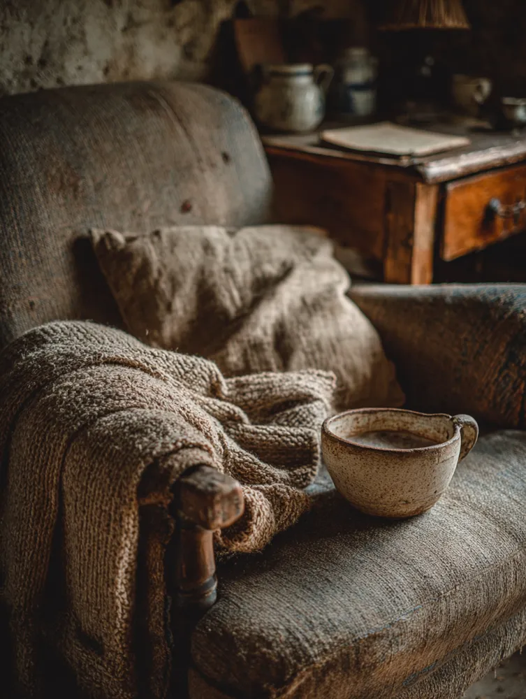 * **Natural Materials:** Unfinished wood, rough linen, and handmade textures.