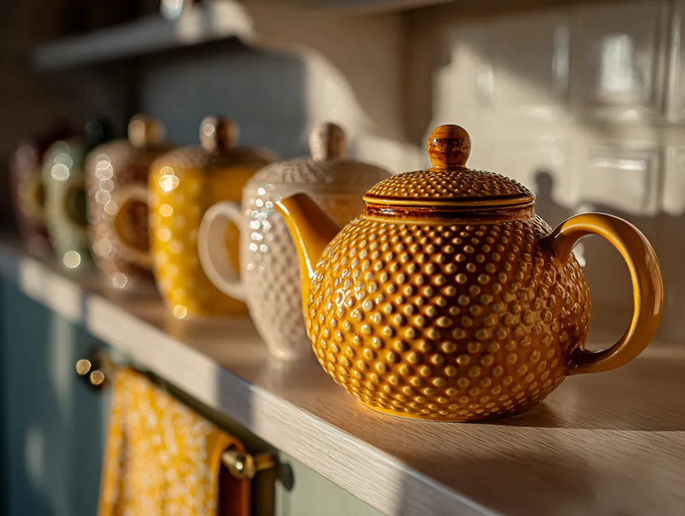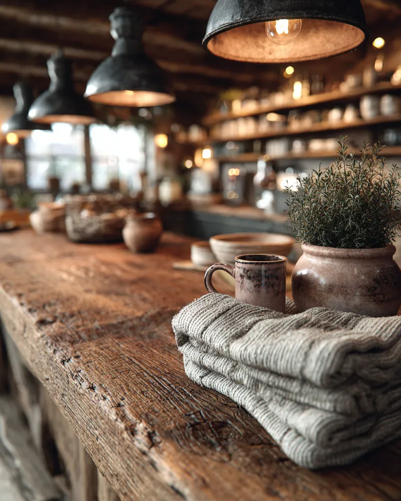 * **Vintage open shelving:** Displaying antique ceramic dishes and glassware.