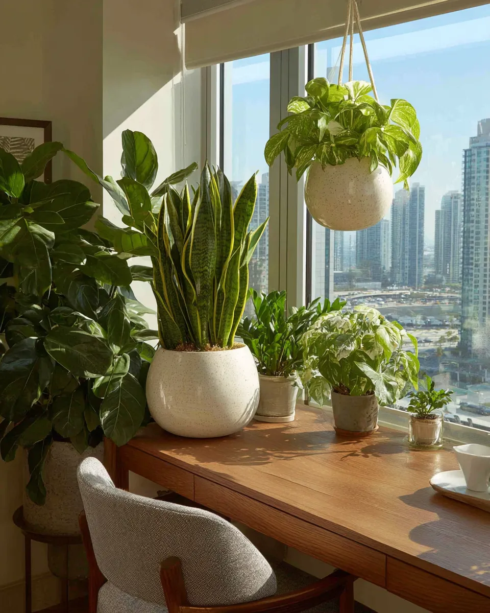 1️⃣ **Snake Plant (Sansevieria)**: Low maintenance, air-purifying, and adds vertical interest.