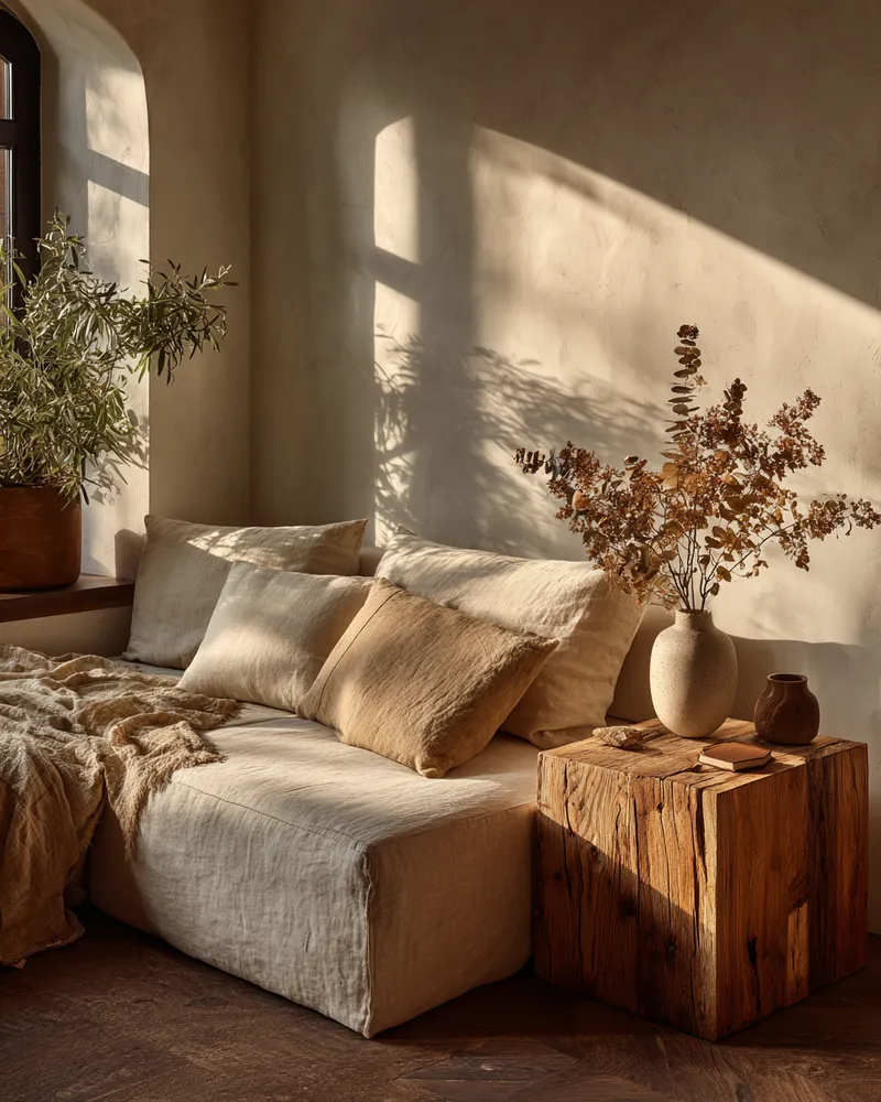 Integrate the grounding essence of nature into your living space by prioritizing sustainable materials. They add warmth, texture, and a healthier environment.