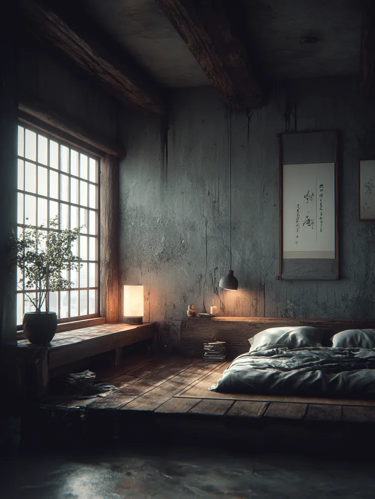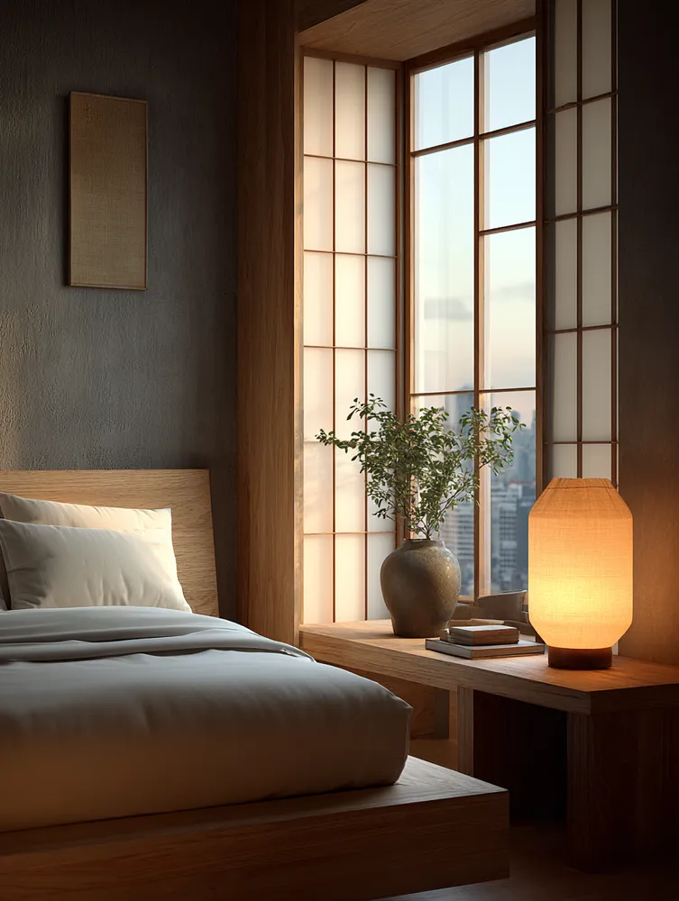 🏮 **Ambient Lighting**: Soft, diffused light sources like paper lanterns or low bedside lamps.