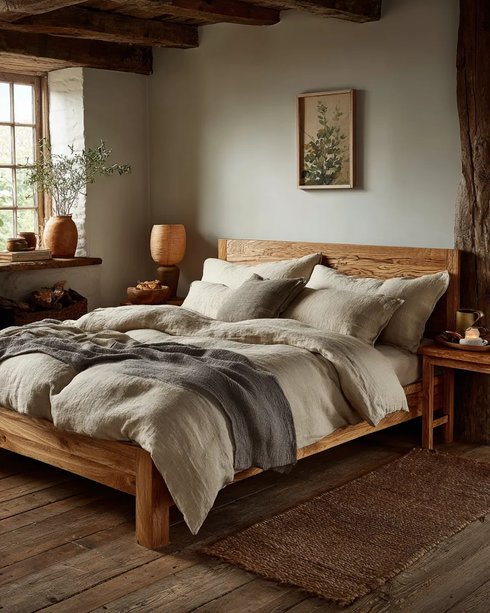 🪵 **Natural Wood Tones**: Light, warm woods for bed frames and accents.