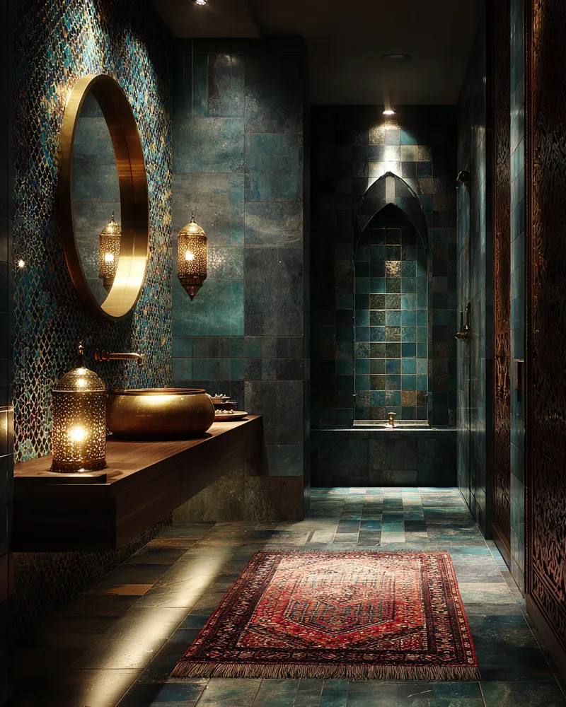 Embrace the richness of jewel tones or earthy terracotta. What color tile combination speaks to you? Save this for your colorful home transformation! 🎨 #colorfulhomedecor#moorishstyle#tiledesign#accentwallideas#interiordecorating#exoticinteriors#tileart#homedesignideas#vibranthomes#patternlover