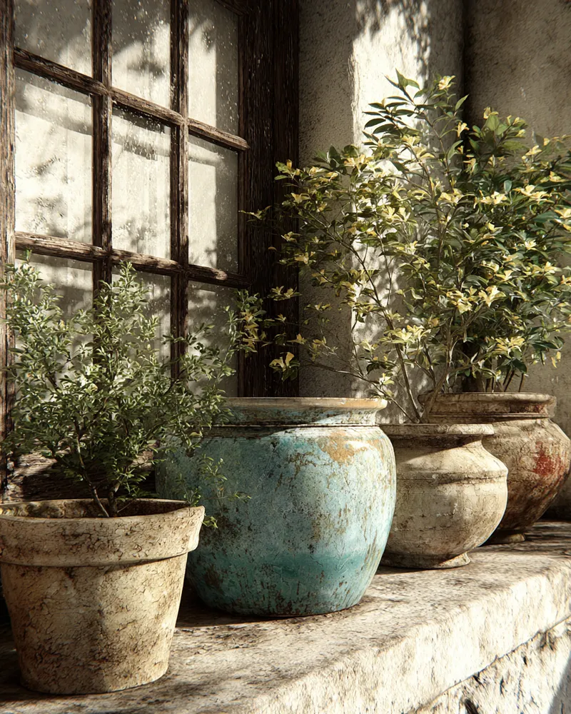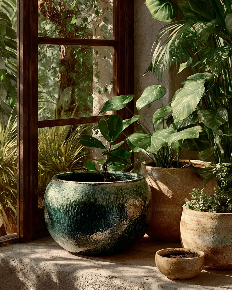 - **Pottery:** Opt for natural materials like terracotta, clay, or woven baskets to complement your decor.