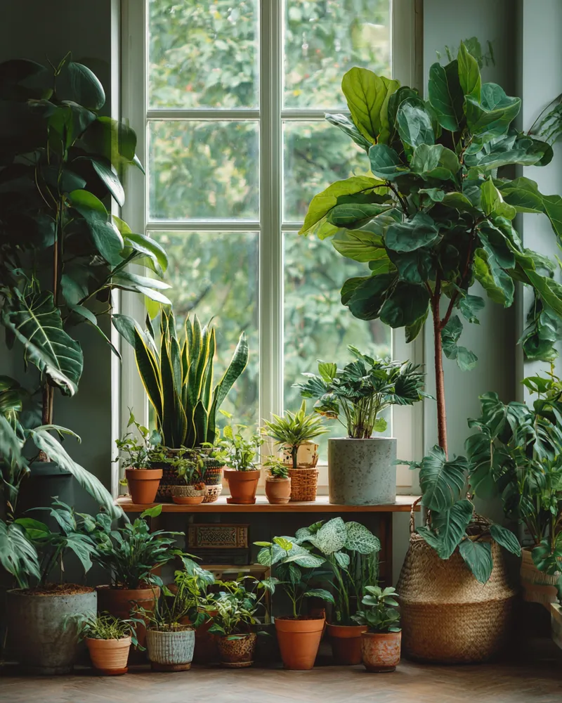 - **Placement:** Consider floor plants for larger spaces, small pots on shelves, or hanging plants to add vertical dimension.