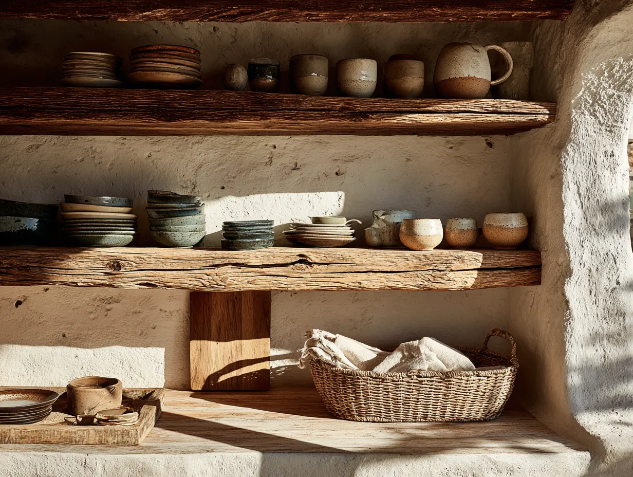- **Open Shelving:** Display beautiful, artisanal ceramics and glassware. Use simple wooden shelves.