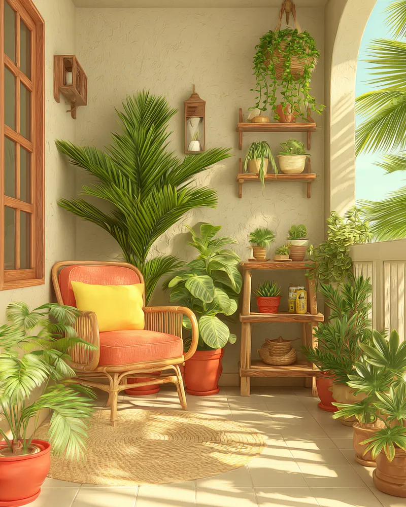 * **Potted Perfection:** Use various sized pots to place lush ferns, palms, or flowering plants.