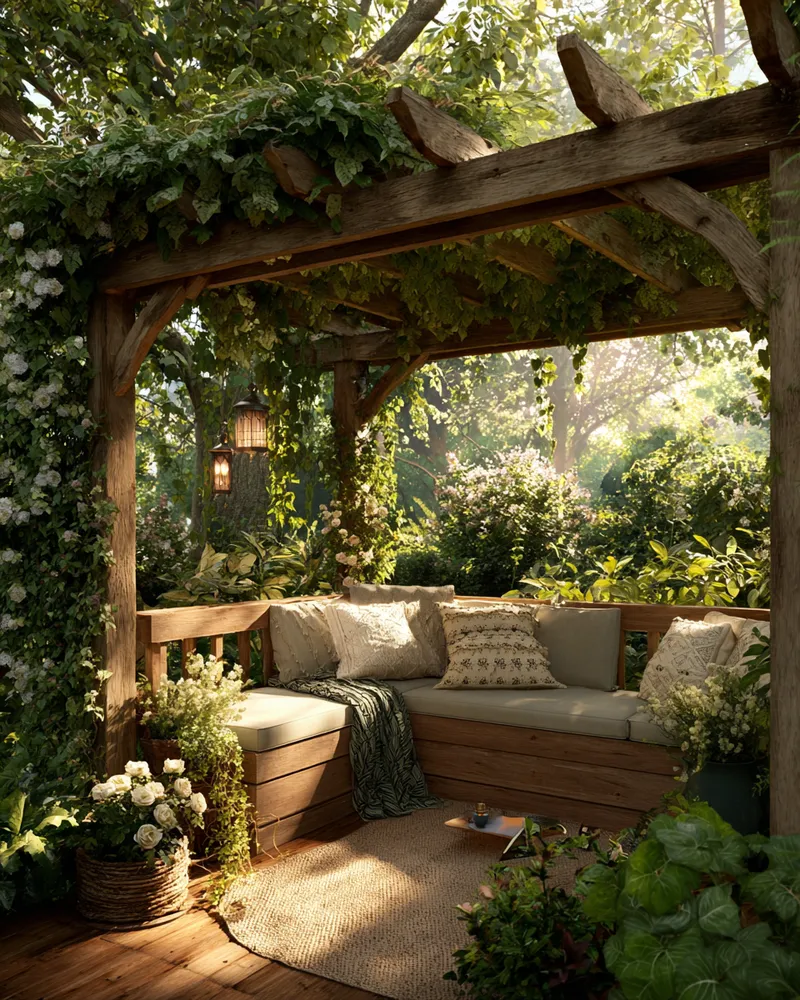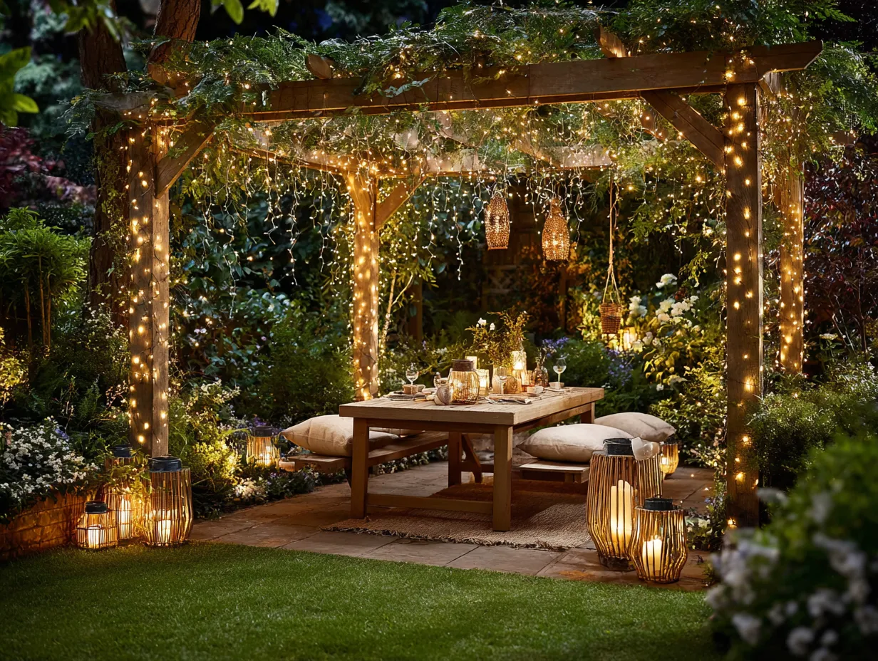 Your pergola can become a dreamy escape! Save this for your nighttime inspiration. 🌿 #pergolalighting#outdoorlighting#eveningambiance#gardenlights#patiodecorideas#outdoorlivingideas#magicalnights#stringlights#lanterns#nighttimecharm