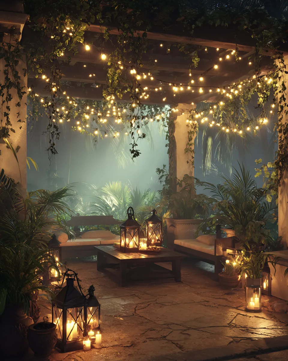 * **Lanterns:** Place them on tables or hanging from posts for cozy pools of light.
