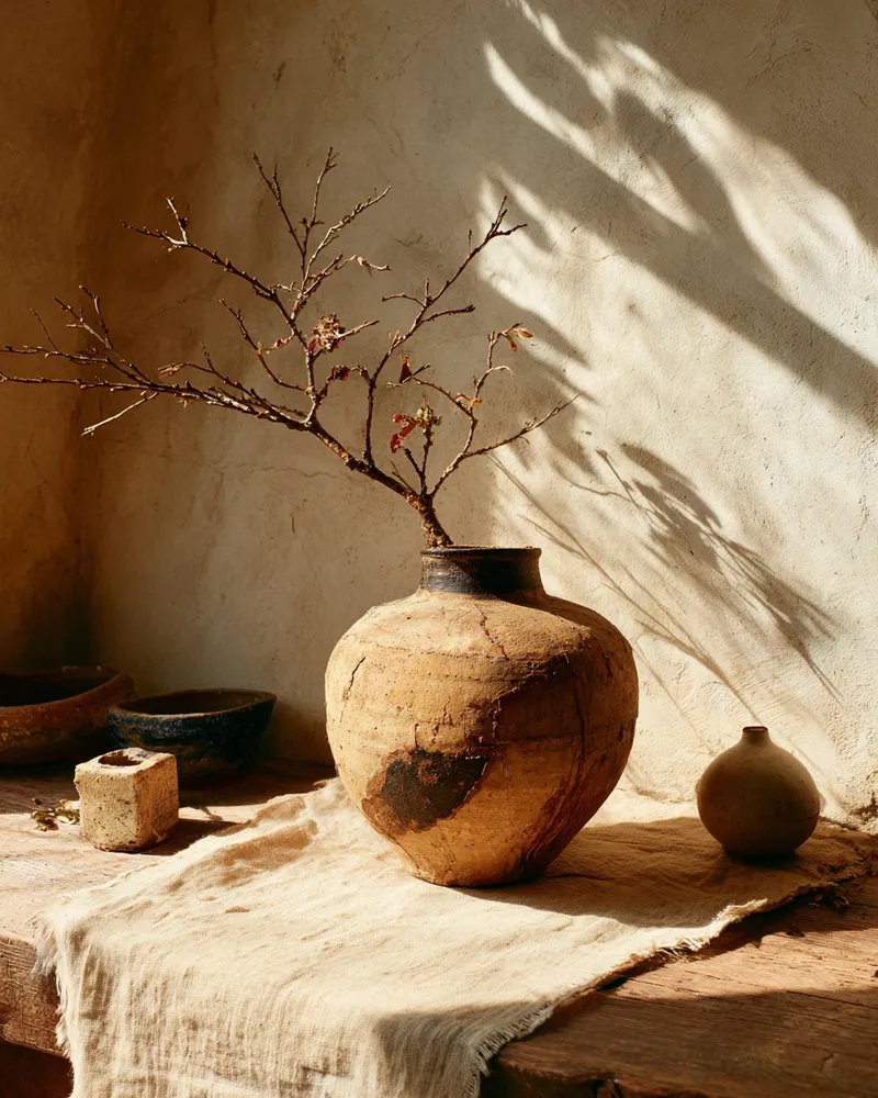 Let the inherent beauty of your pottery bring a sense of peace and acceptance into your home. 🕊️ Save this for your appreciation of authentic decor! #wabisabi#wabisabidecor#pottery#ceramicart#imperfectlyperfect#naturaldecor#artisanalpottery#wabi-sabiideas #homedecor#findingbeauty
