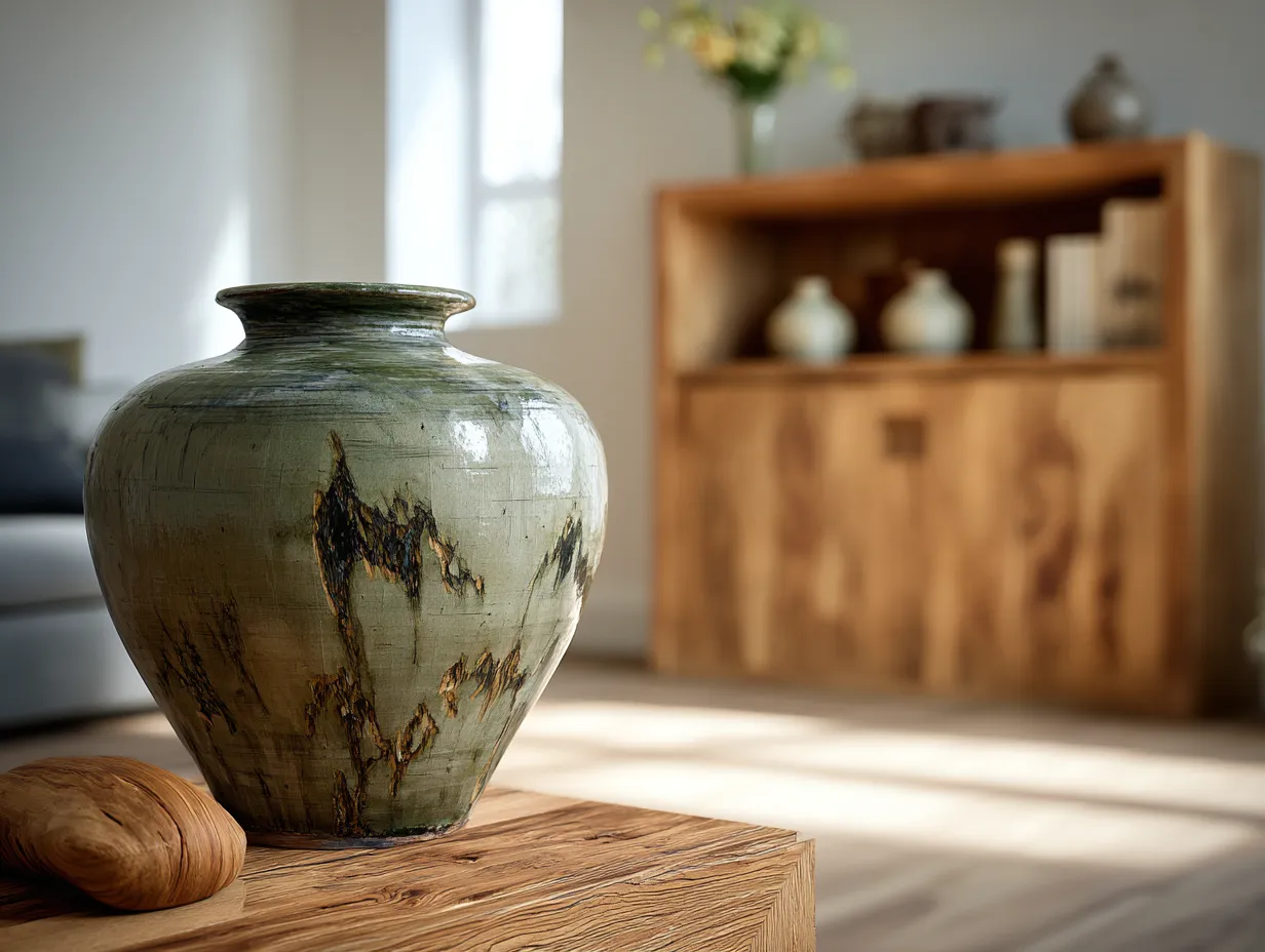 • **Textured Ceramics with Wooden Accents:** Mix matte pottery with polished wood, or glazed ceramics with natural, unvarnished wood.