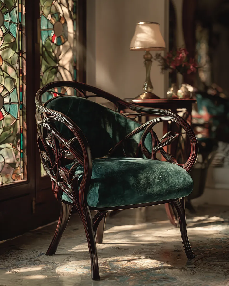 Dreaming of a home filled with flowing lines and natural motifs? ✨ The Art Nouveau style is all about organic beauty and decorative artistry. An accent chair can be the perfect focal point to infuse this enchanting aesthetic into your space.