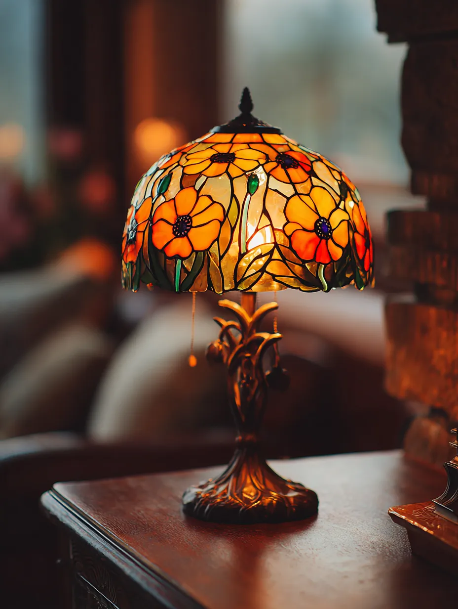 These aren't just sources of light; they're sculptural pieces of art. Expect to find flowing, organic lines in the bases – think bronze vines or stylized figures – and lampshades crafted from beautiful stained glass. The glass often features natural motifs like flowers, dragonflies, or peacock feathers, rendered in rich, jewel-like colors.