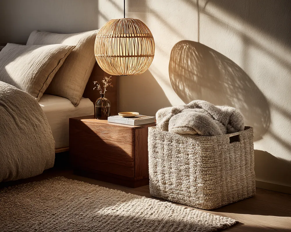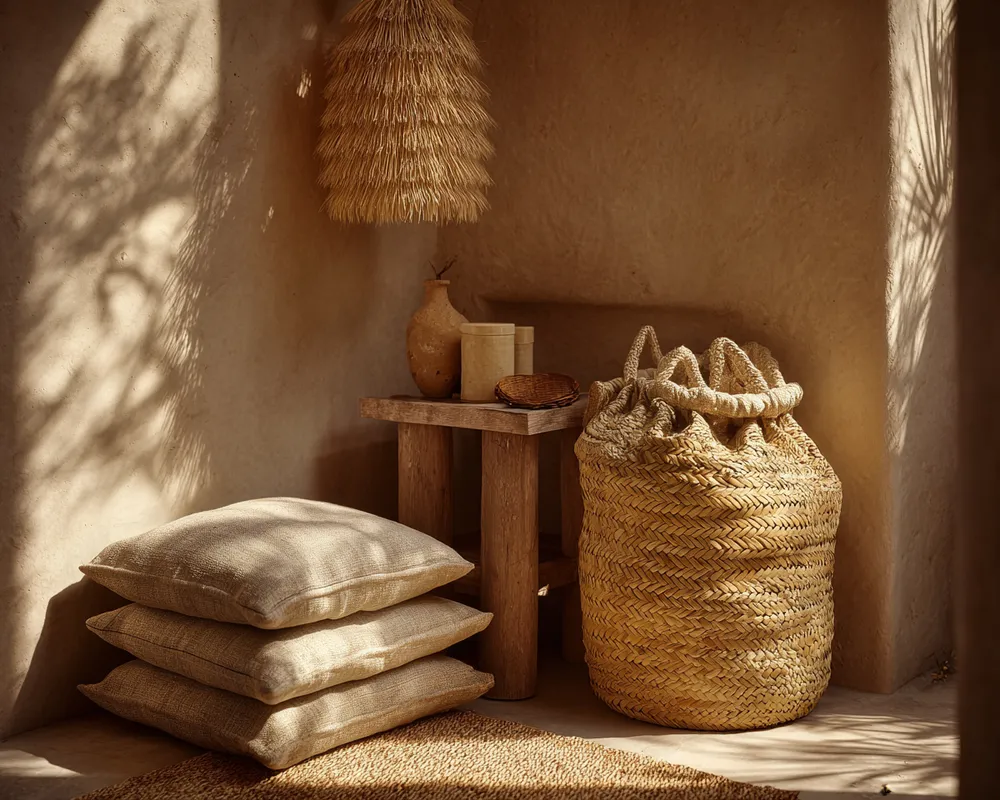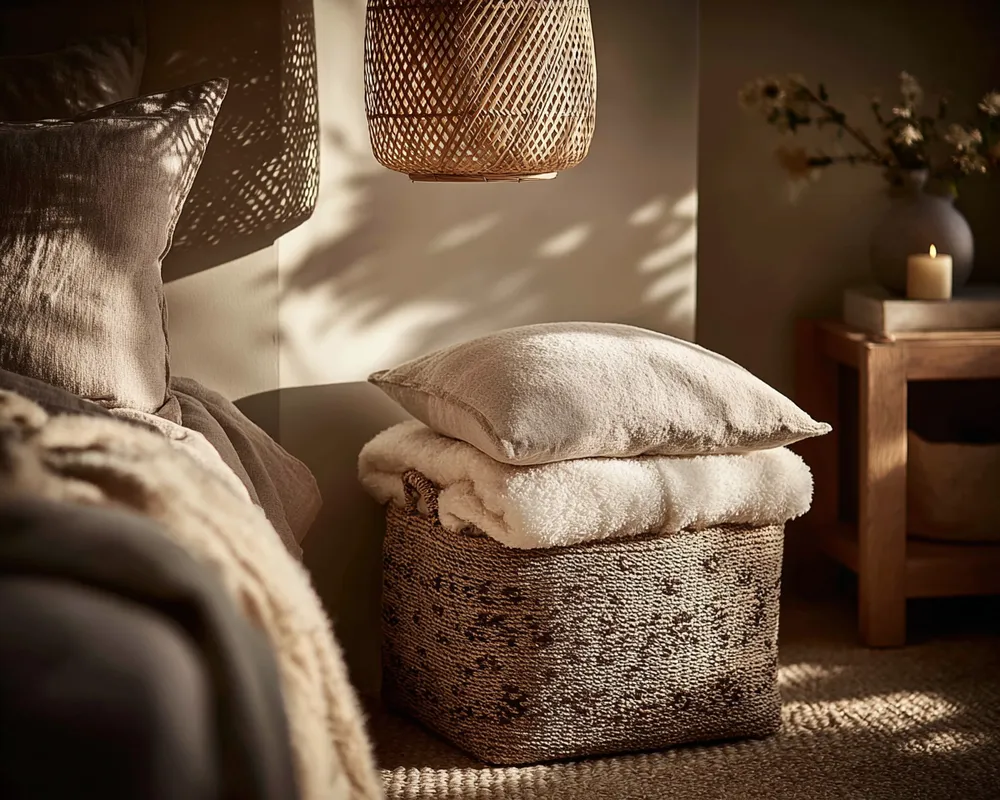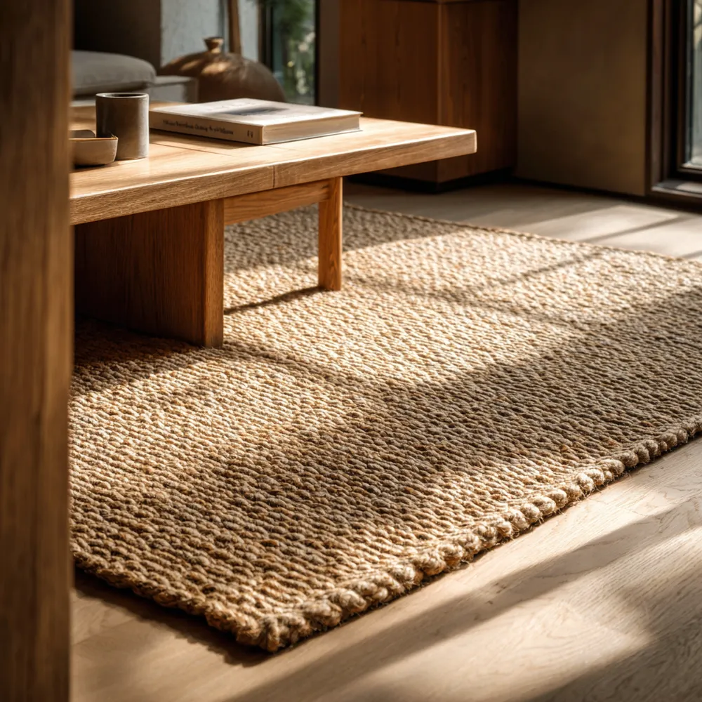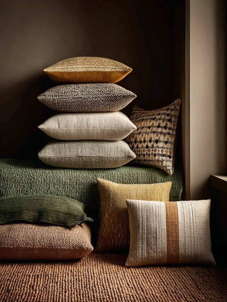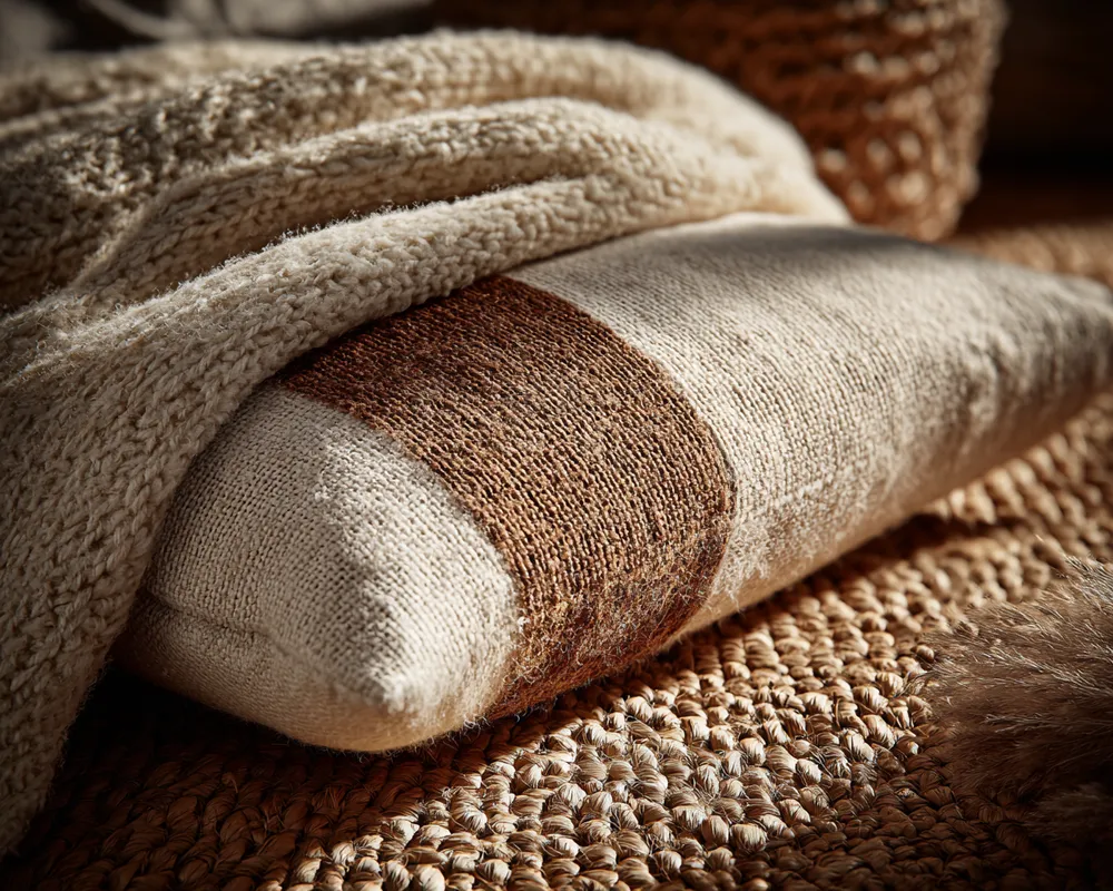 The soft narrative of a home is often woven through its textiles. In Japandi design, rugs and cushions are key players.