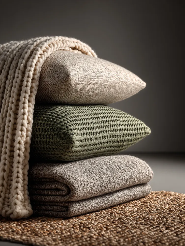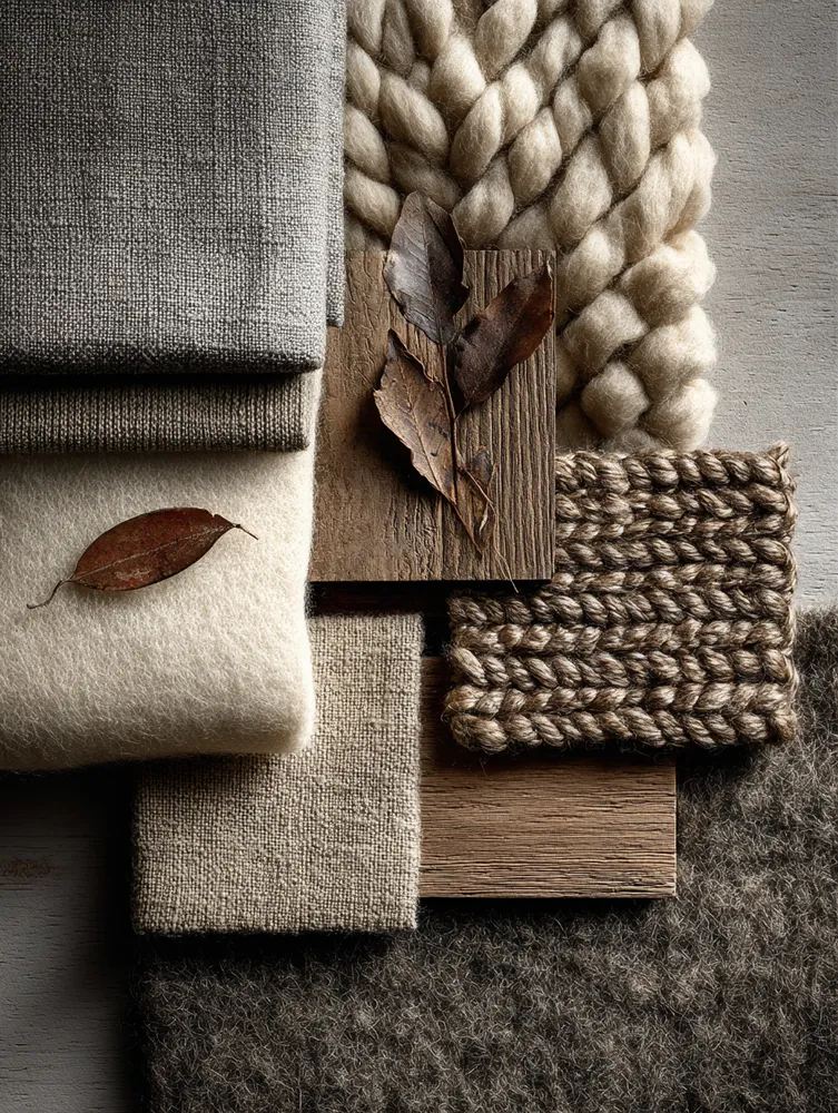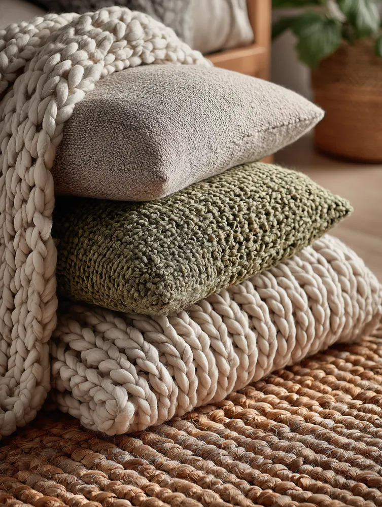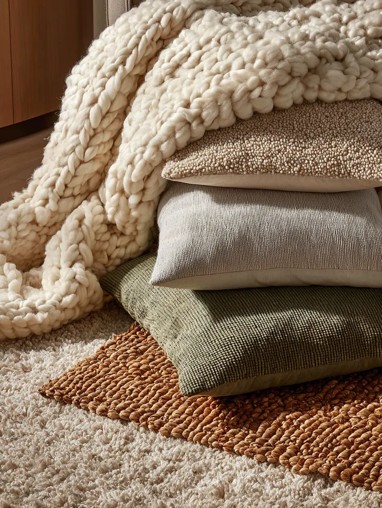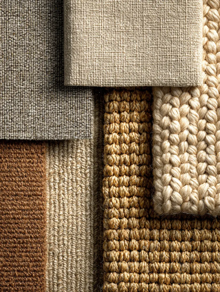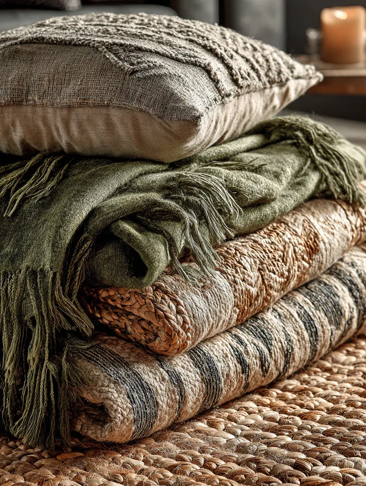 • **Natural Fibers:** Wool, cotton, jute, and linen for their tactile appeal.
