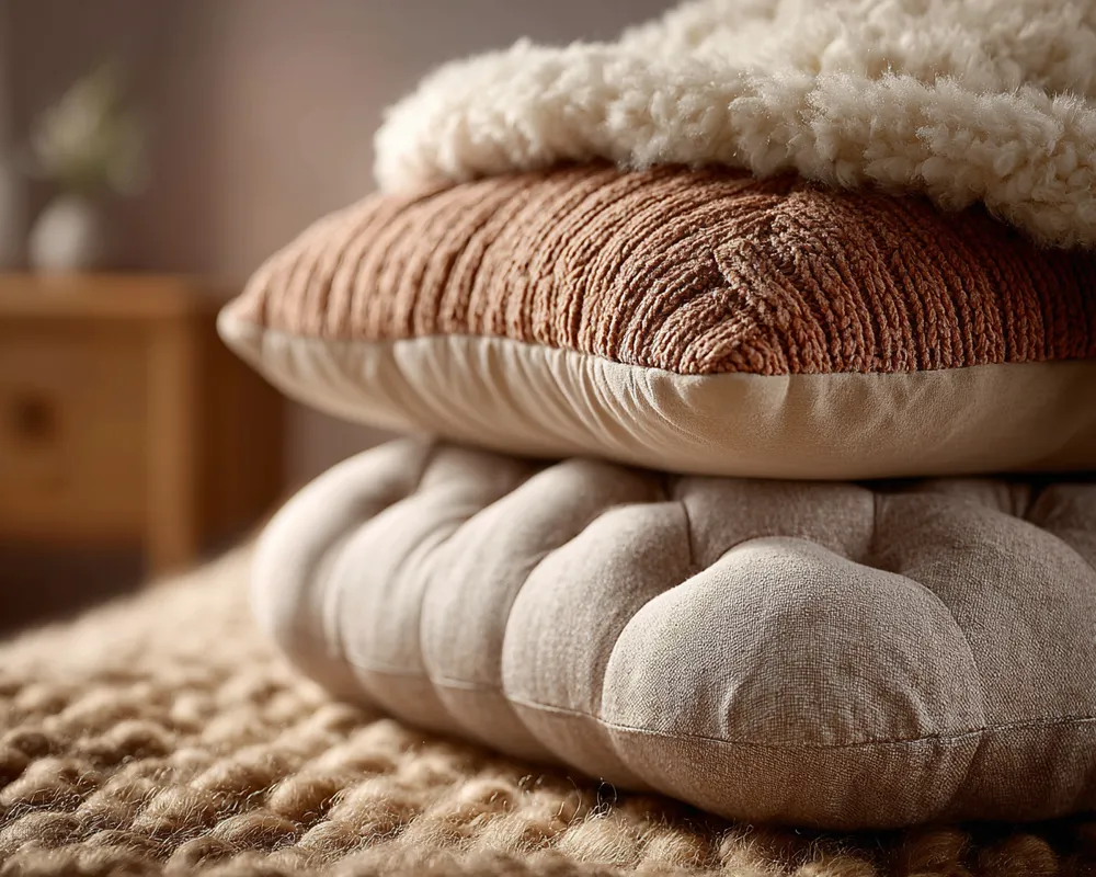 Your comfort, beautifully told. 🤍 #japanditextiles#rugs#cushions#japandiideas#homedecor#interiordesign#textiledesign#cozyhome#naturalfibers#storytellingcomfort