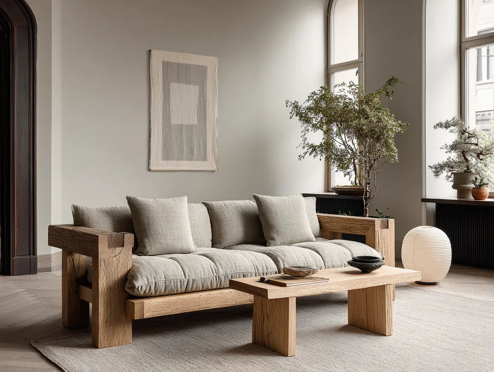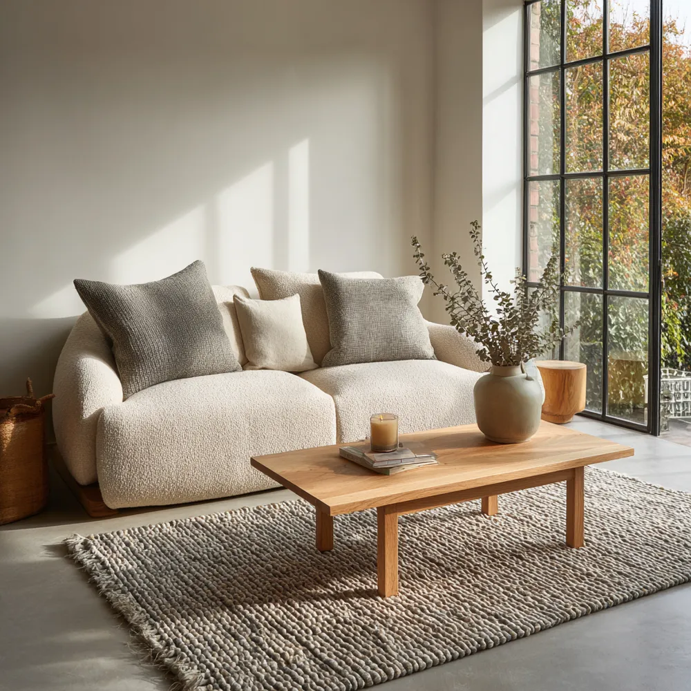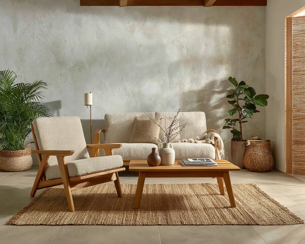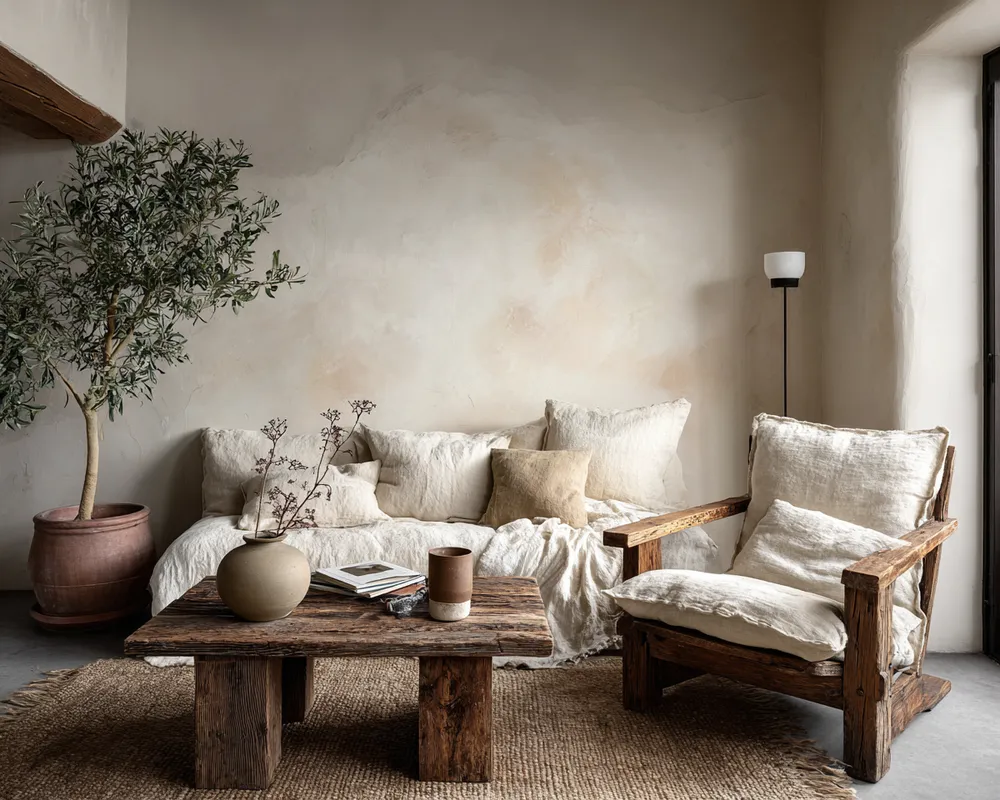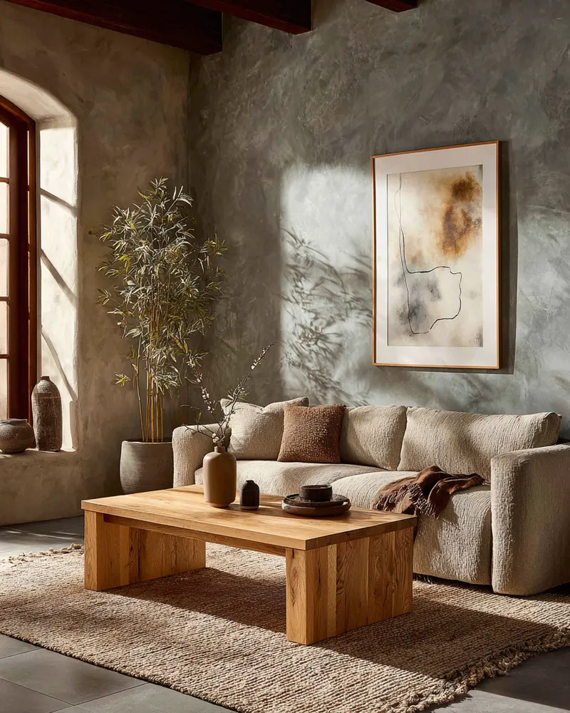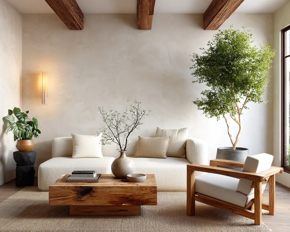 ✨ **Natural Materials:** Light woods, rattan, linen, ceramics.