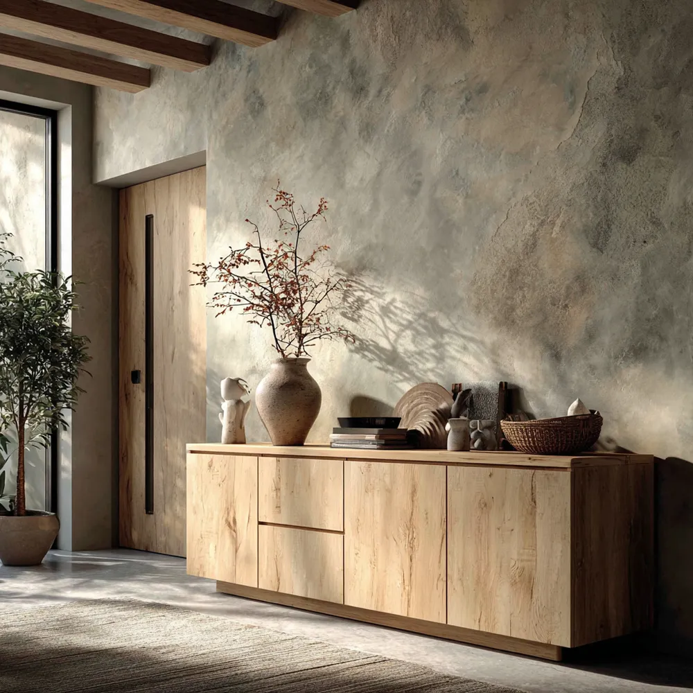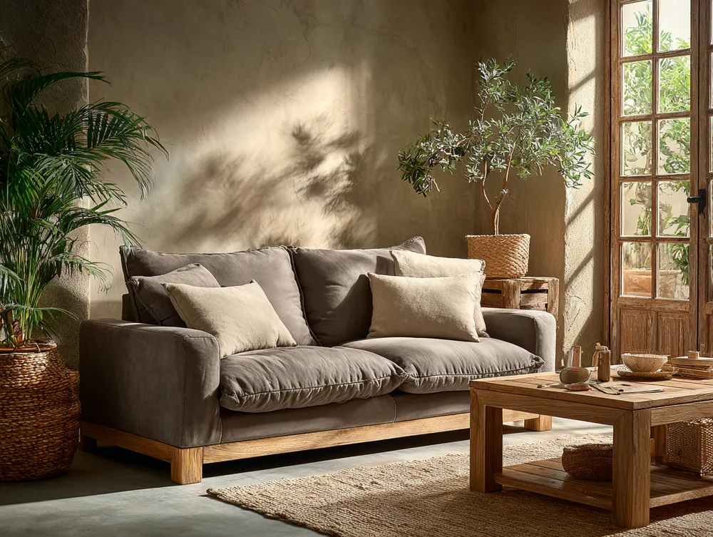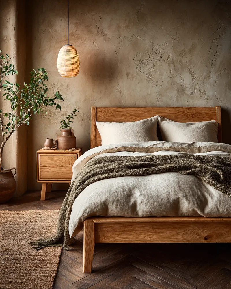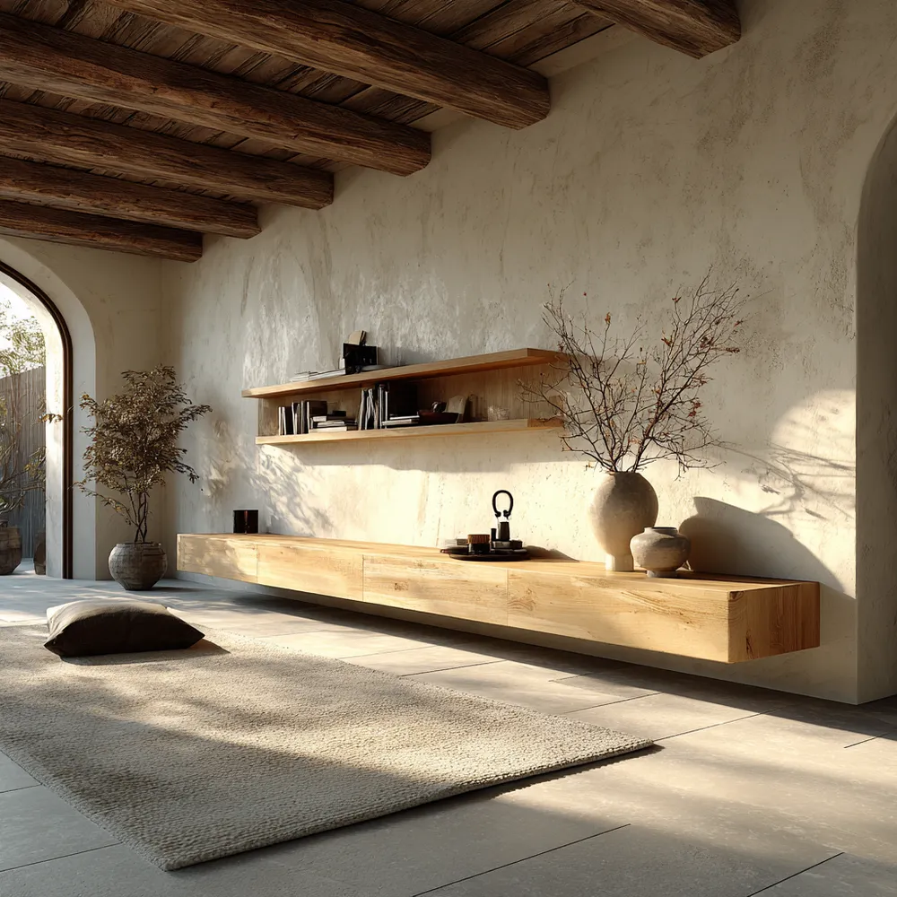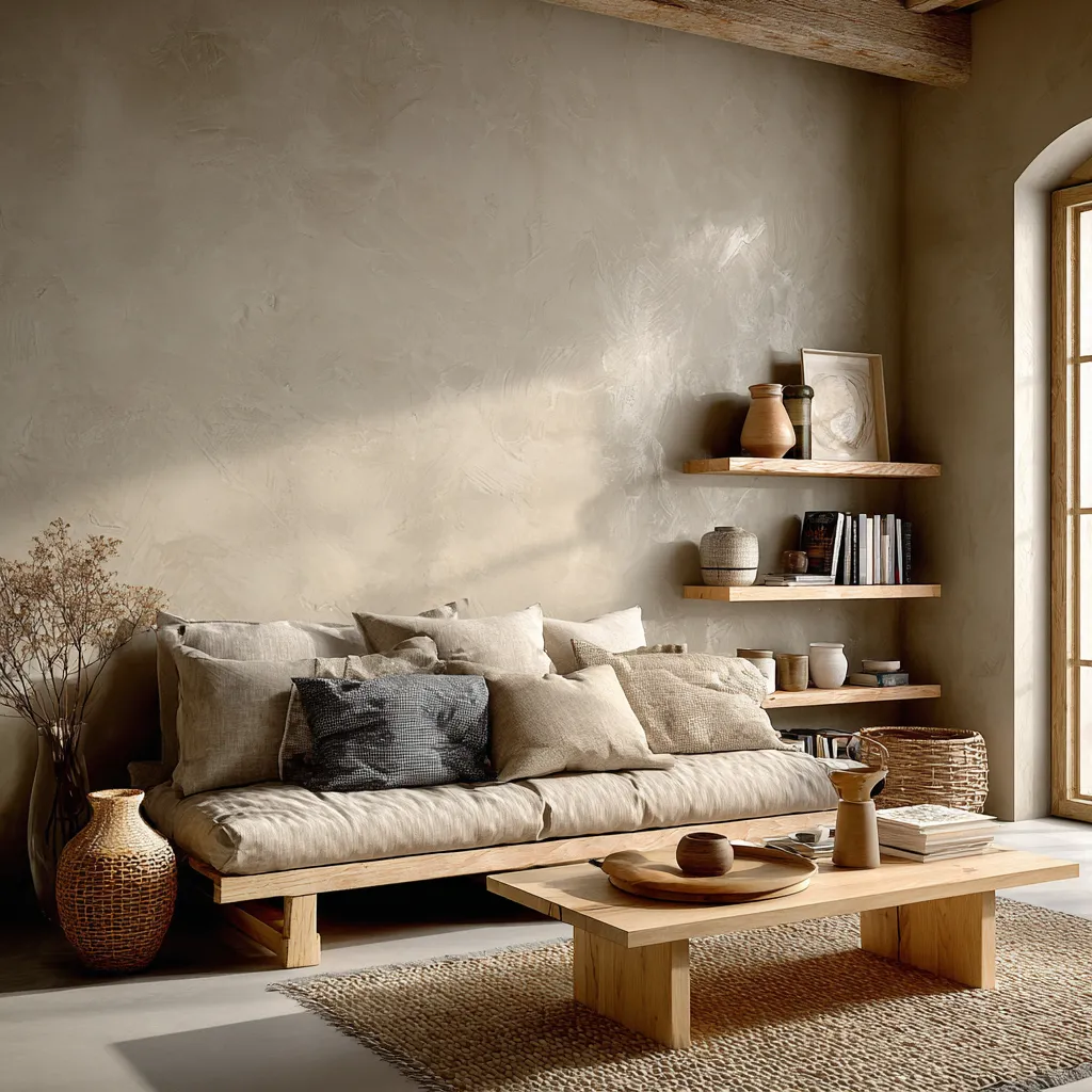 ✨ **Natural Materials:** Light woods, rattan, linen, ceramics.