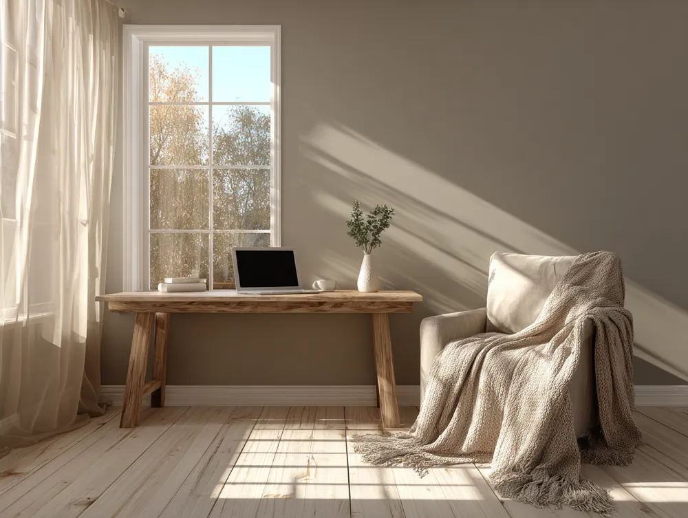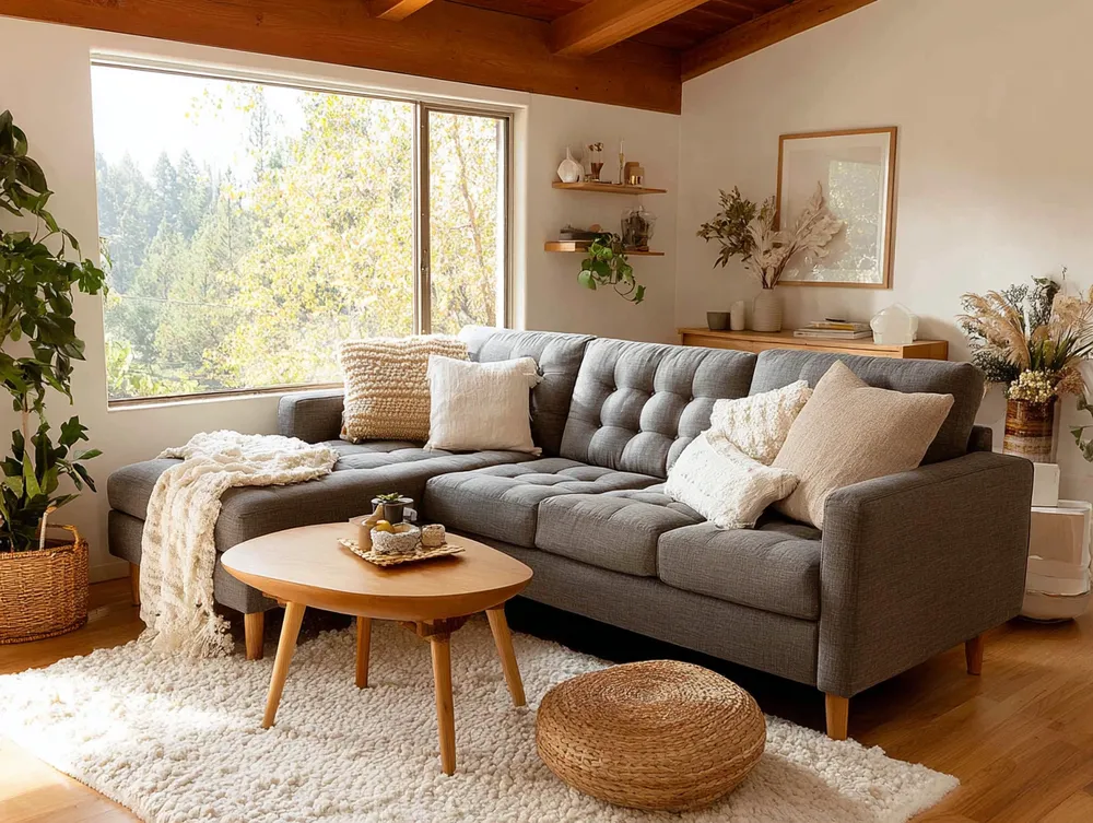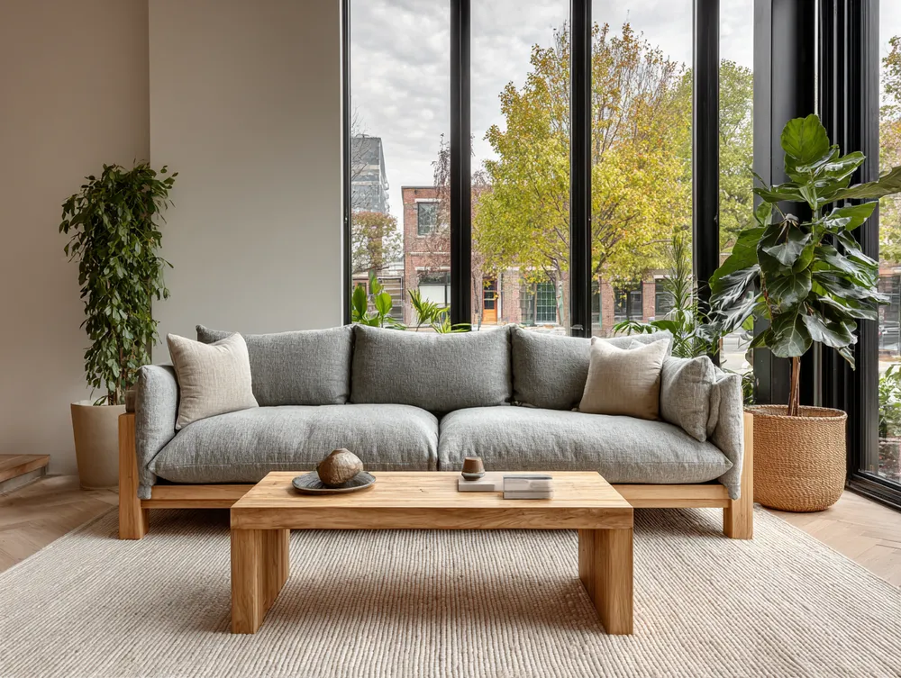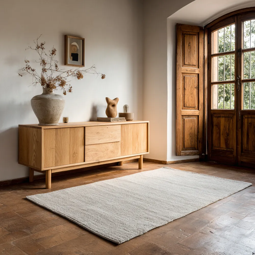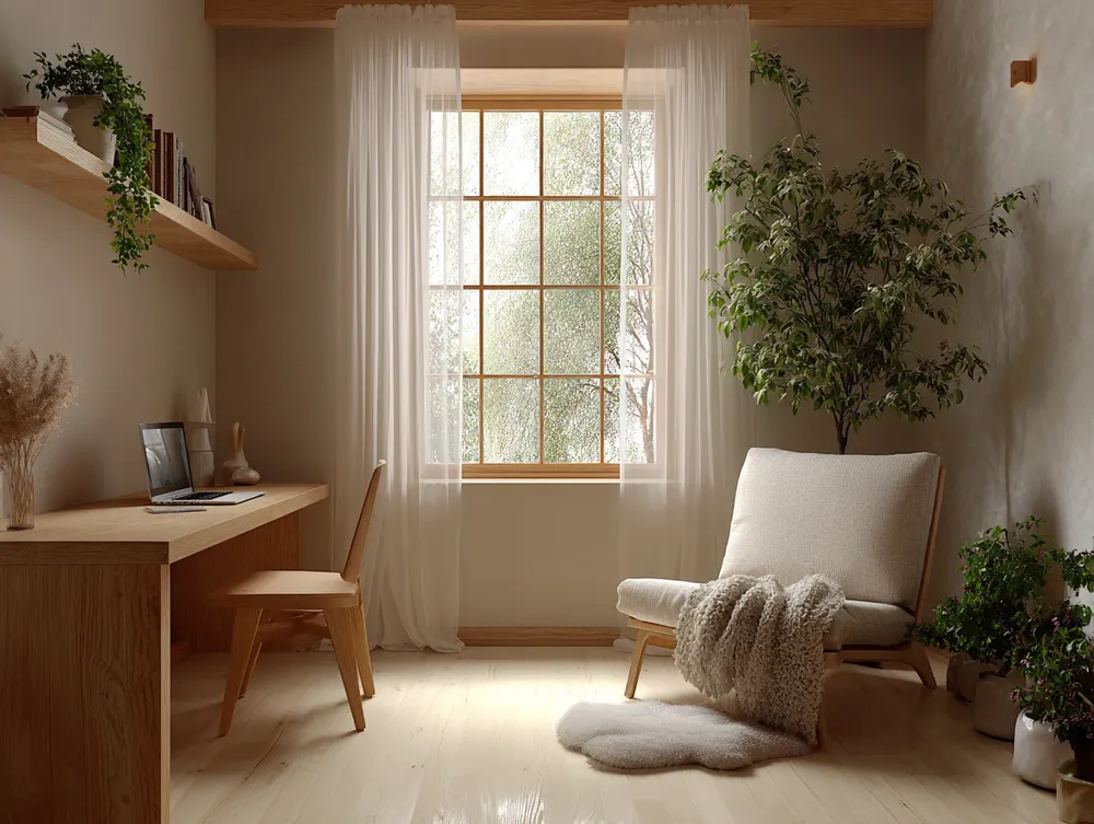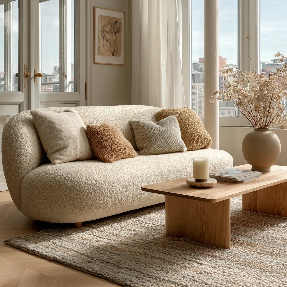 ✨ **Natural Materials:** Light woods, rattan, linen, ceramics.