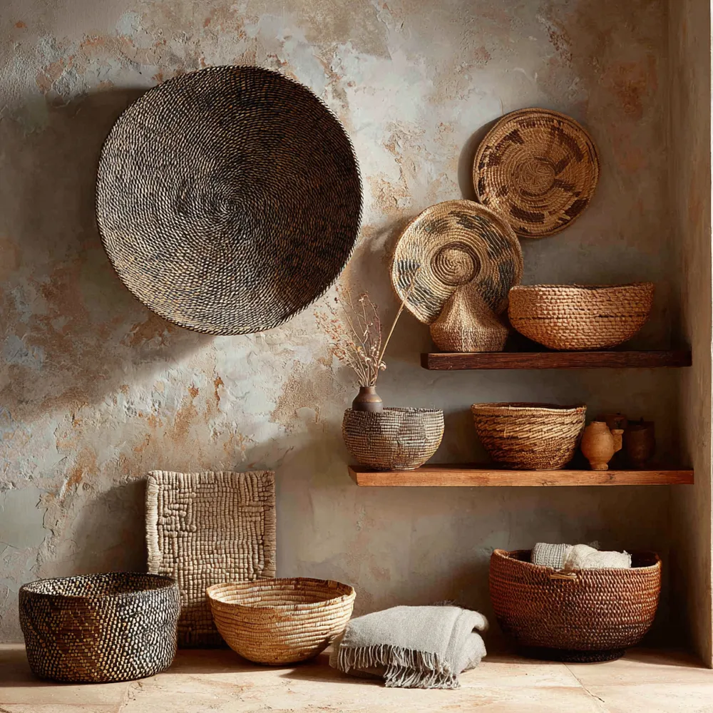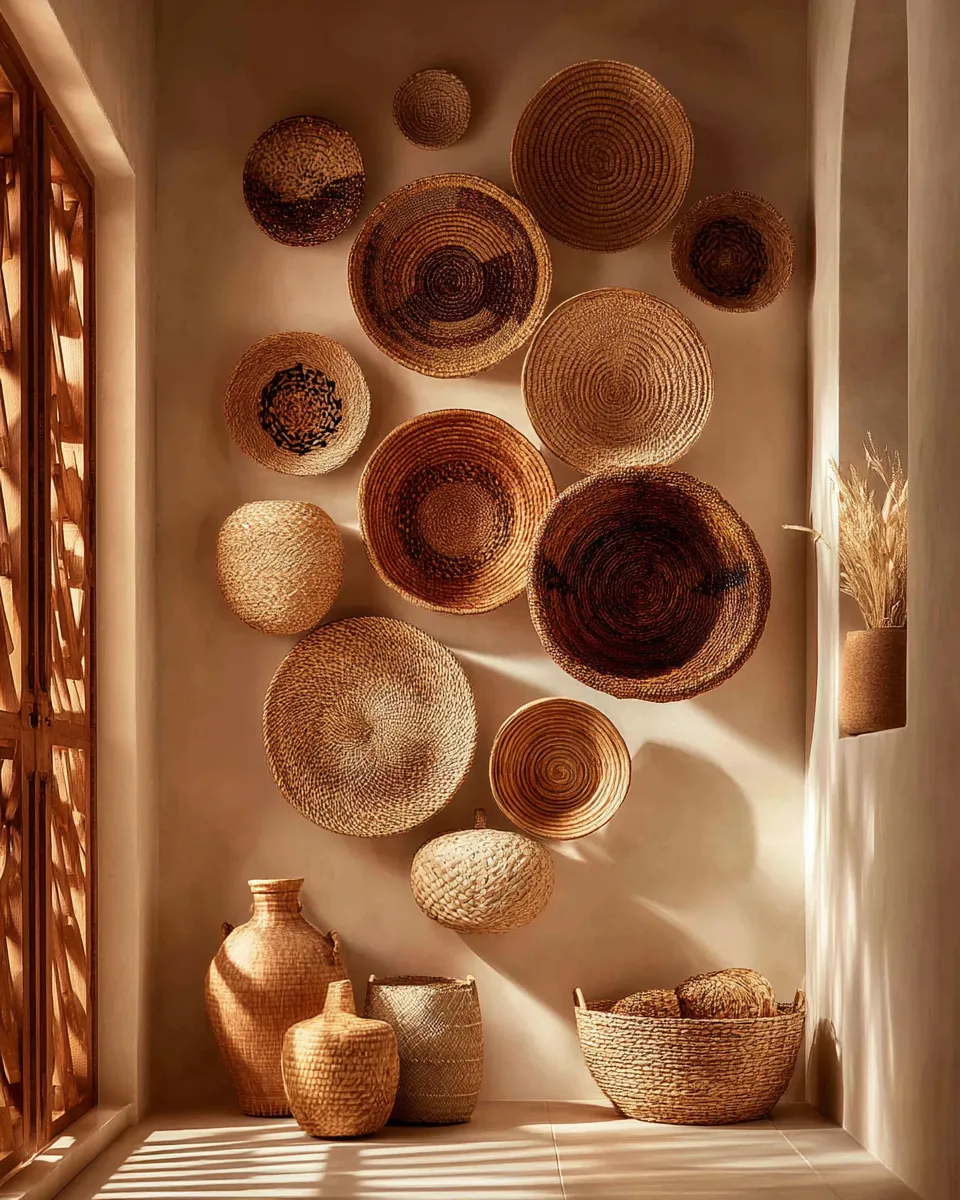 Woven Wonders: Elevating Walls with Textured Basket Art 🧺