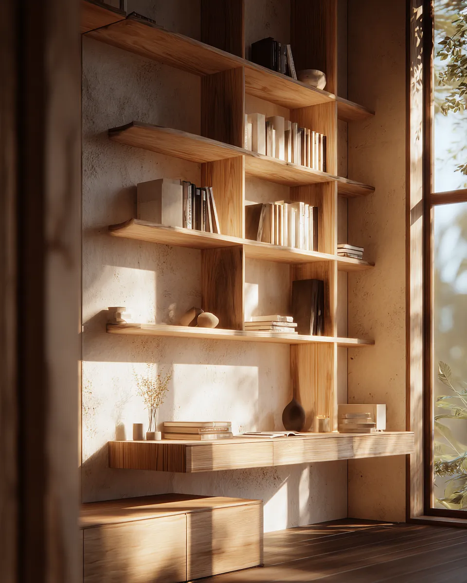 Elevate your literary collection with custom Japandi bookshelves that are as functional as they are beautiful. 📐 The key is minimalist design, natural materials, and thoughtful integration. Imagine sleek, wall-mounted units crafted from light-colored wood like birch or maple, with clean, unfussy lines. We love incorporating varied shelf heights to accommodate different book sizes, and perhaps a discreet pull-out desk surface for reading. Consider integrating hidden storage with push-to-open drawers to maintain that seamless, clutter-free aesthetic. Natural light is essential; position your shelves to catch sunlight or complement with soft, ambient lighting from within the unit. It's about creating a personalized haven for your books and a statement of refined taste. Save this for your home library ideas! ✨ #JapandiBookshelfIdeas#BookshelfIdeas#CustomShelving#JapandiDesign#MinimalistStorage#HomeLibrary#InteriorDesign#NaturalWood#ArchitecturalDetail#DecorInspo