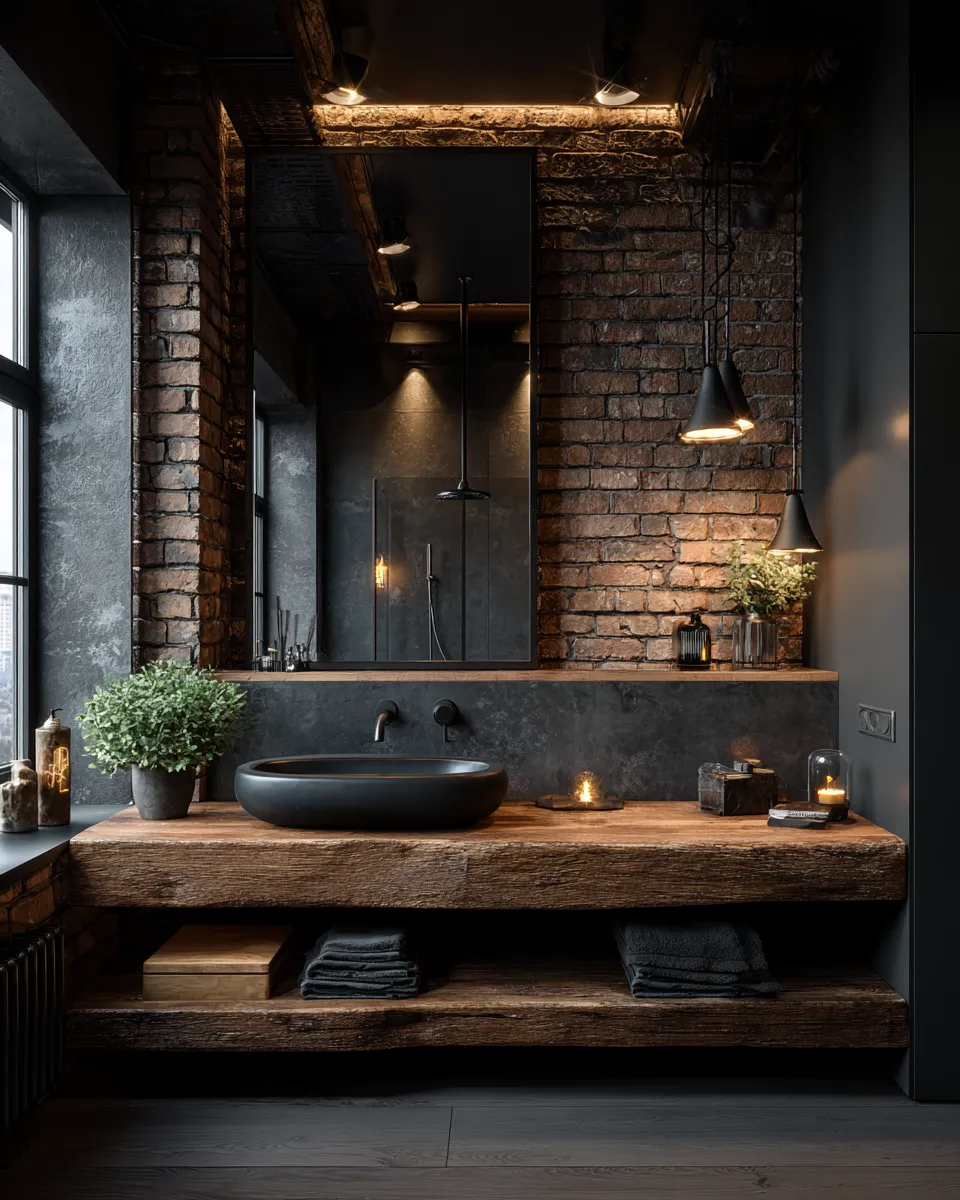 Dreaming of an urban oasis? Bring the striking aesthetic of exposed brick into your bathroom for an unparalleled industrial-chic vibe! It adds incredible texture, character, and a sense of raw sophistication. 🧱 Pair it with modern fixtures and warm wood elements to create a space that's both edgy and inviting.