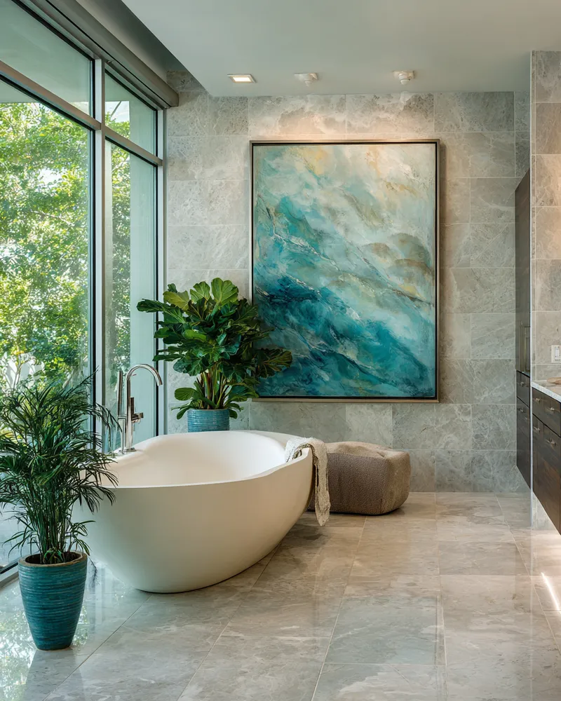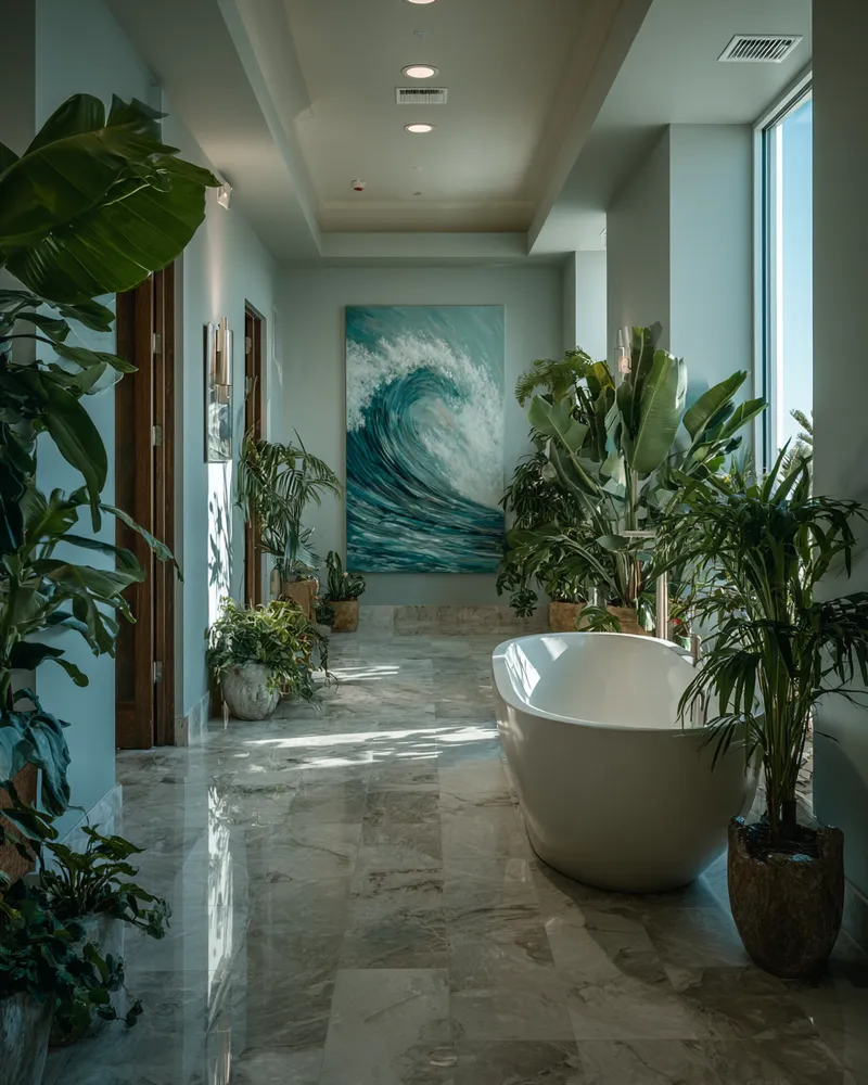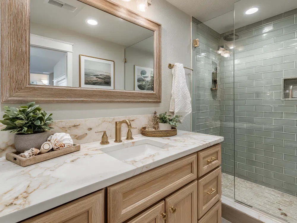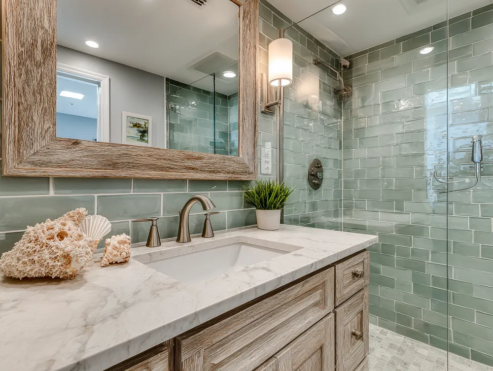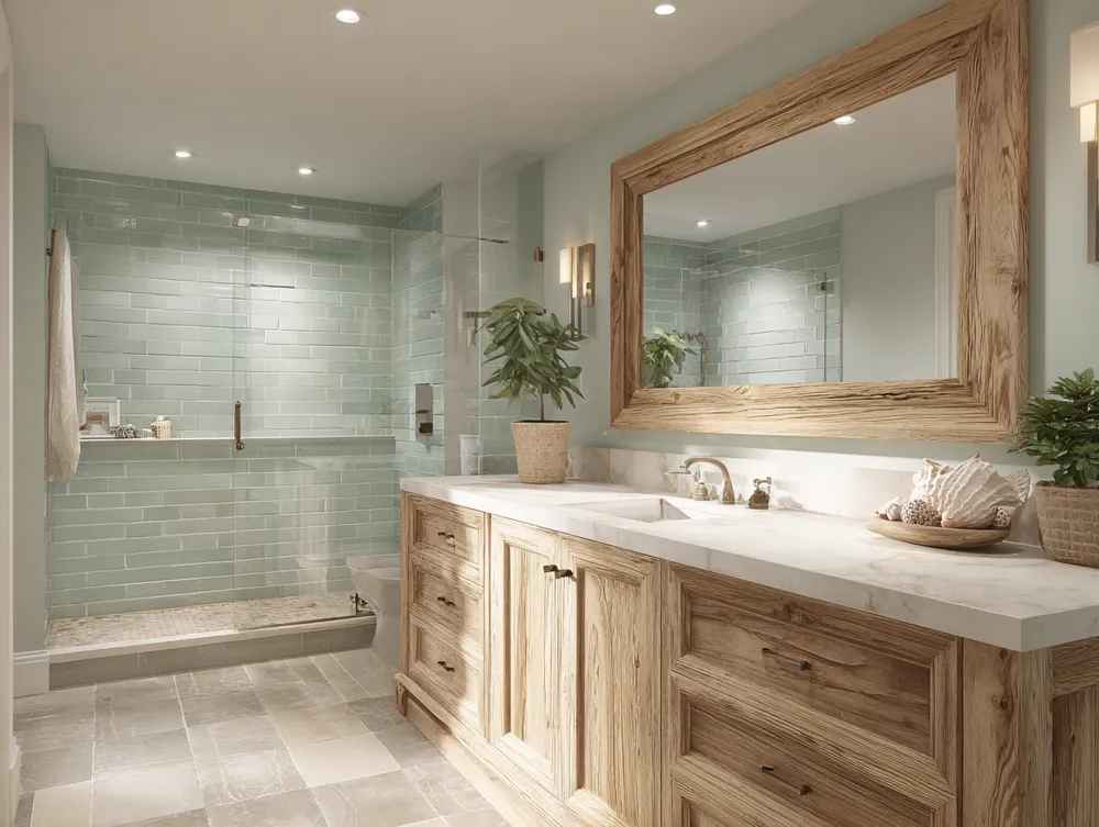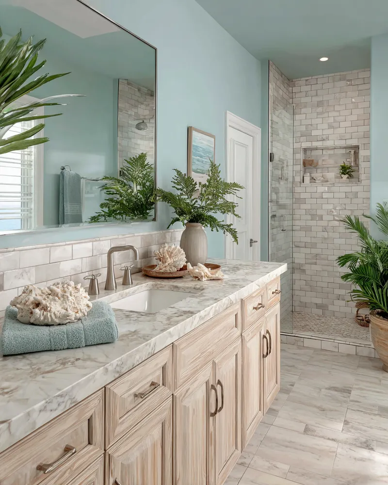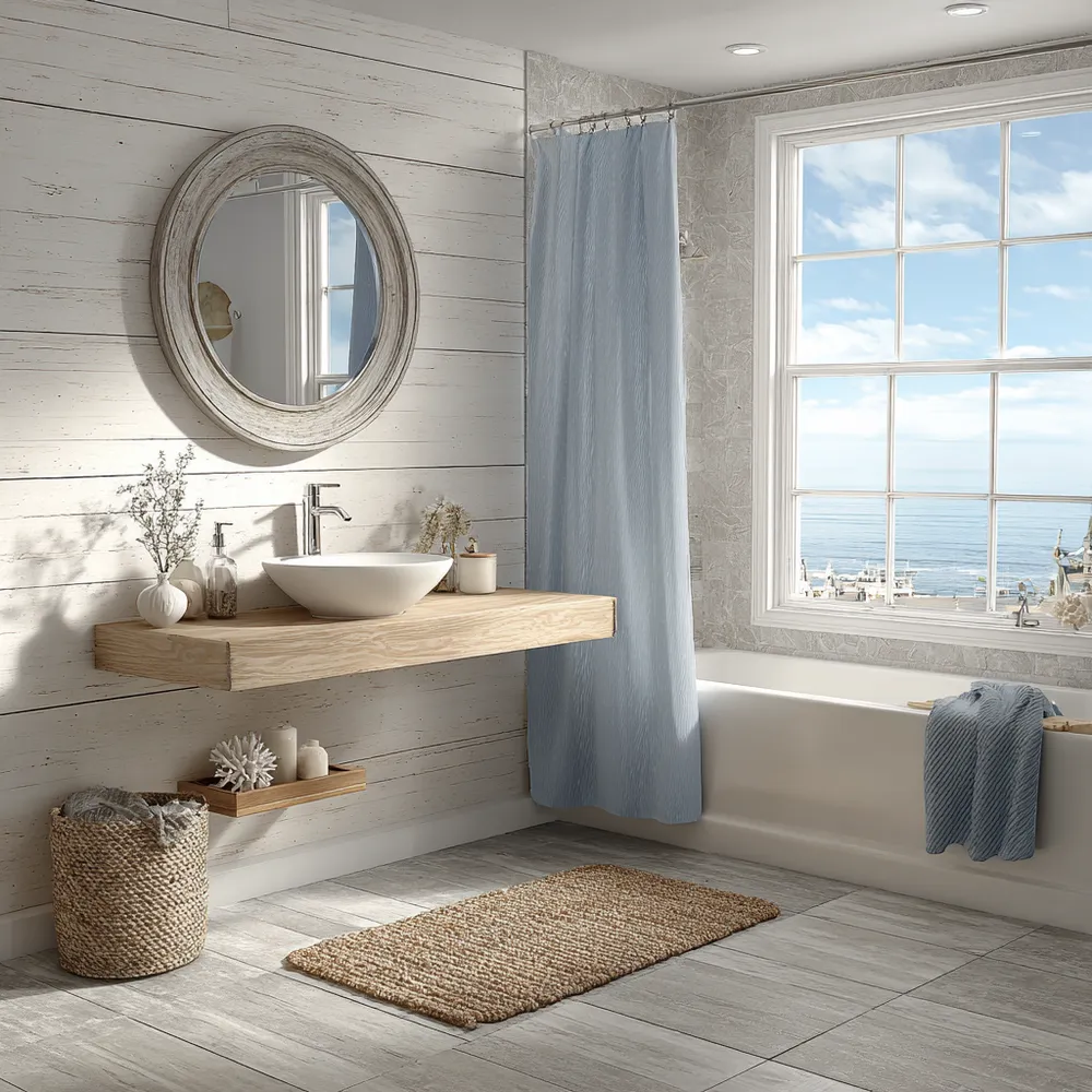 Transform your bathroom into a personal spa retreat with simple coastal touches. Think light, airy, and calming for a truly relaxing experience.