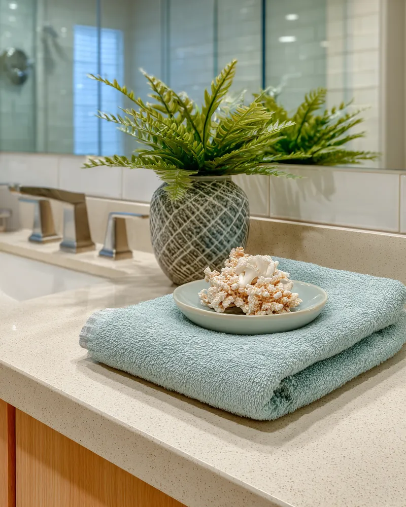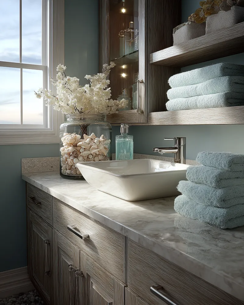 * **Seaside Accents:** A few curated shells or a piece of beach-inspired art.