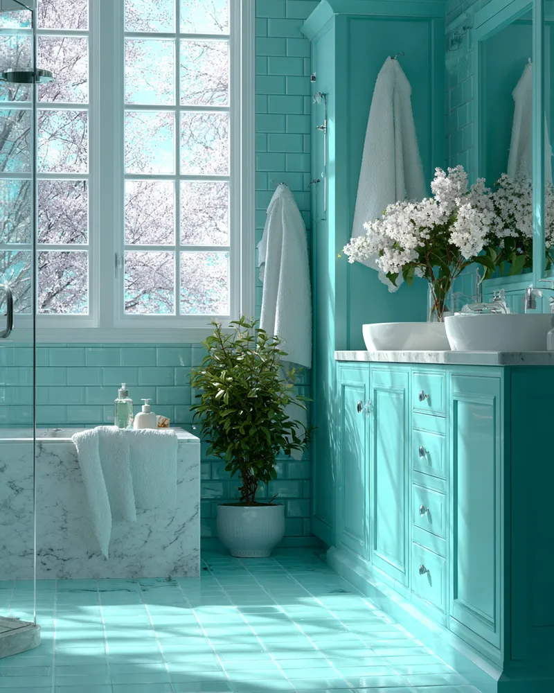 Creating a tranquil escape is easier than you think! Save this for your bathroom inspo. 🌊 #bathroomideas#coastalbathroom#homedecorideas#bathroomdesign#bathroomdecor#spahome#decorinspo#seasidedesign#bathroomrefresh#calminghomeideas