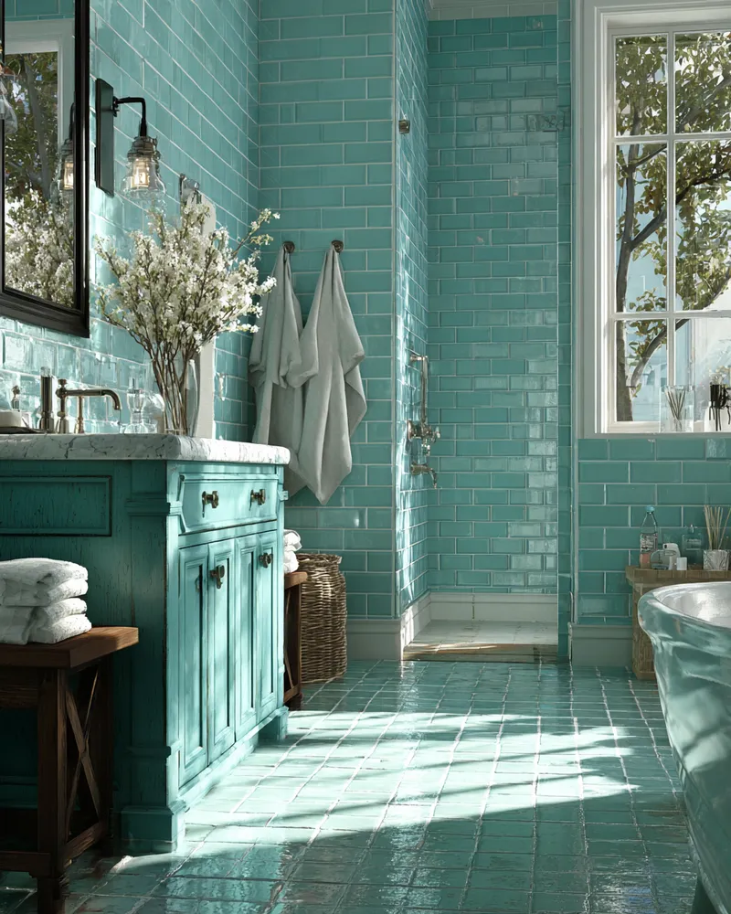 * **Natural Materials:** Wood vanity, bamboo accents, or woven baskets.