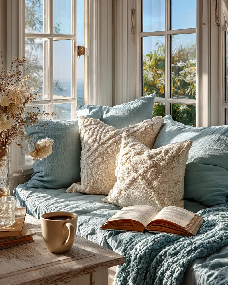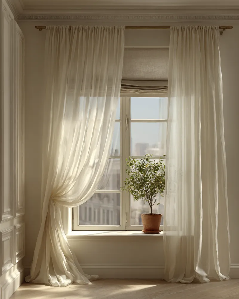 * **Sheer Linen Curtains:** For diffused light and ultimate softness.
