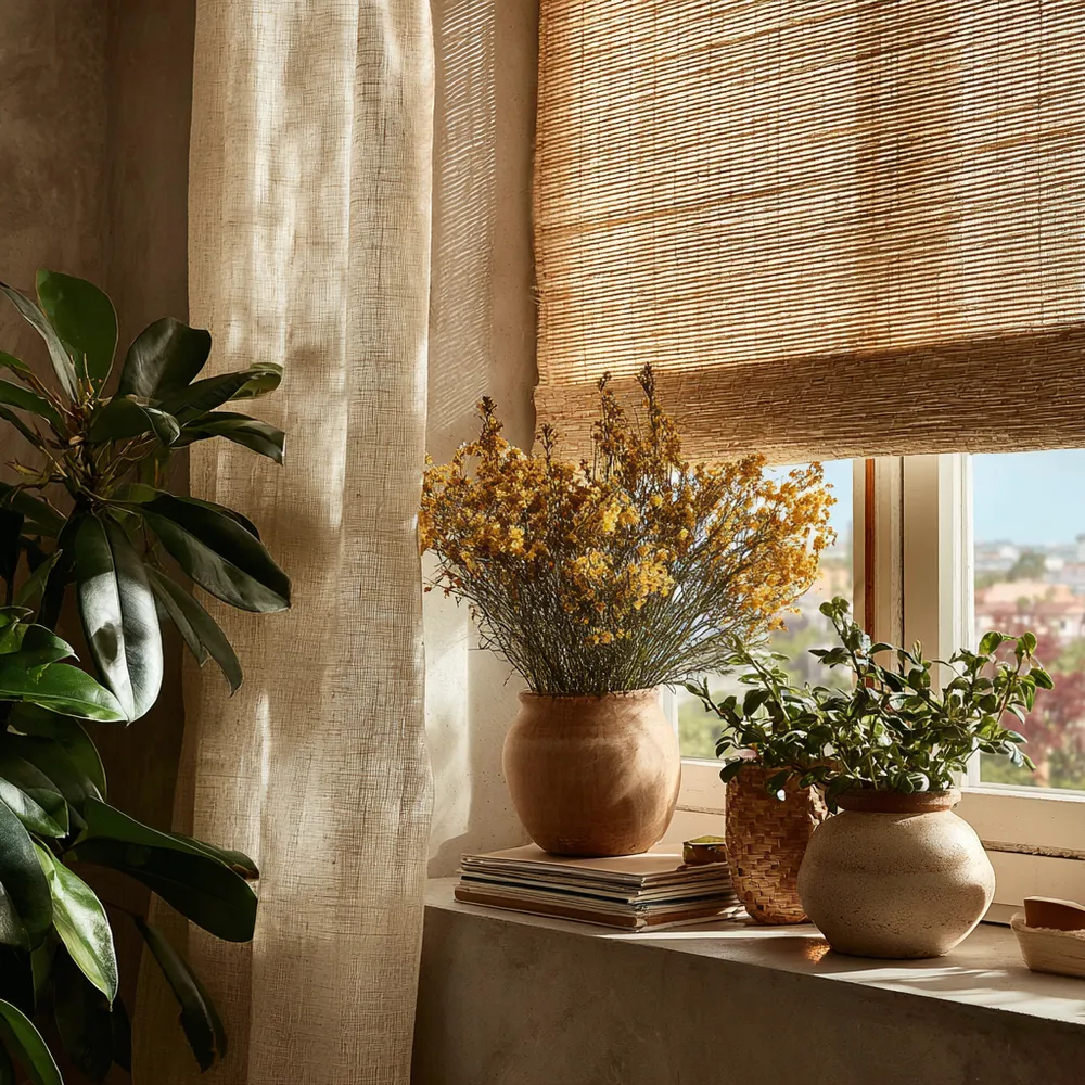 * **Woven Wood Shades:** To add texture and organic warmth.