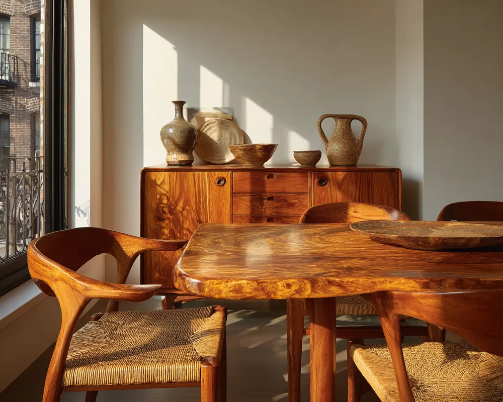From sleek sideboards to dining tables and credenzas, teak adds that authentic vintage flair. It pairs beautifully with pops of color or other natural materials.