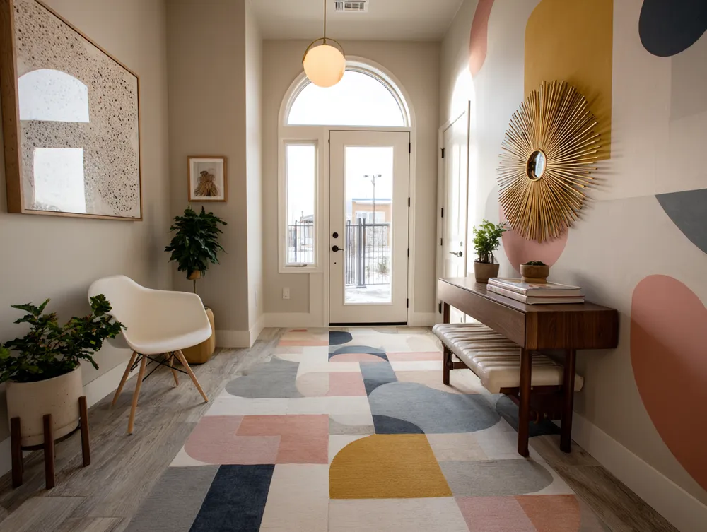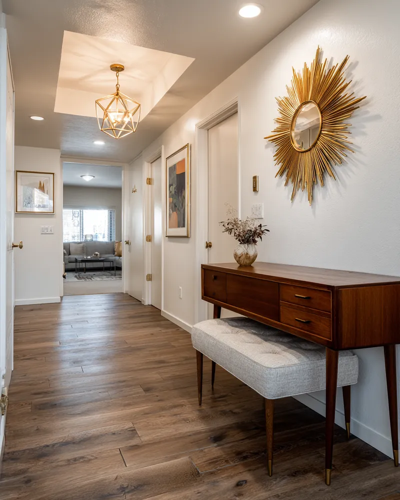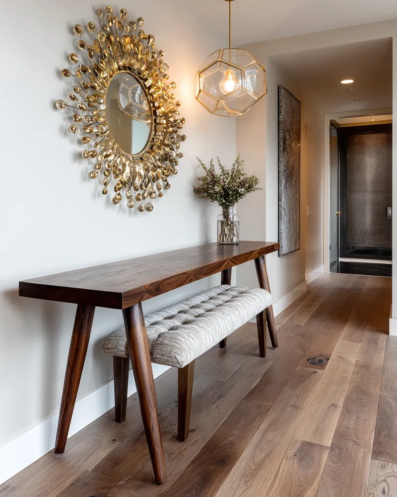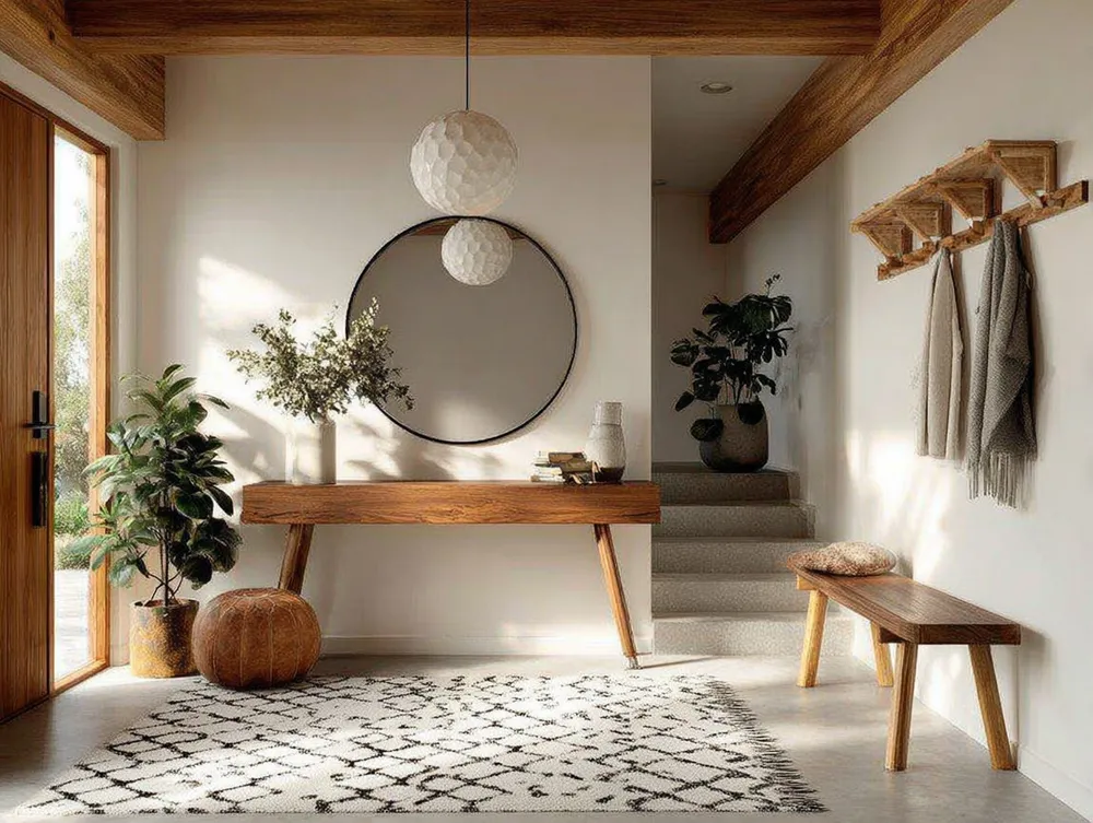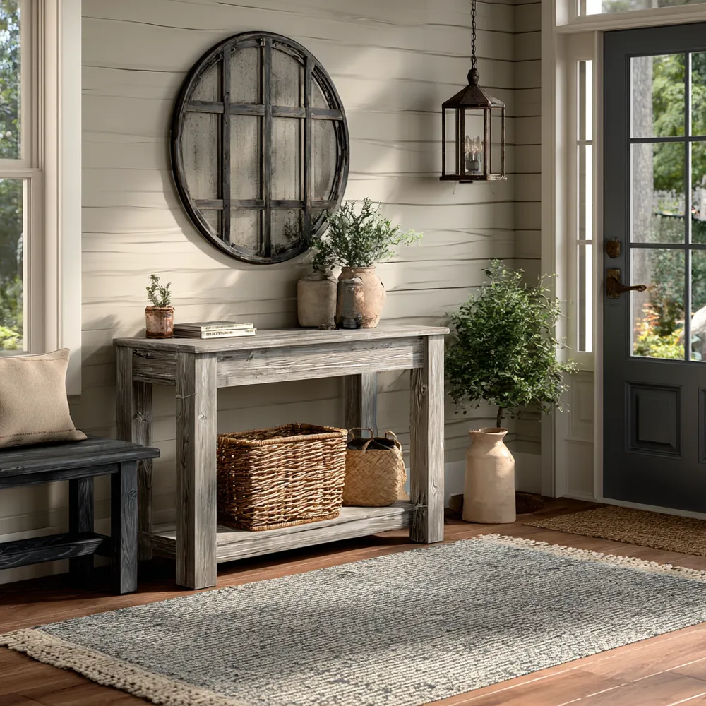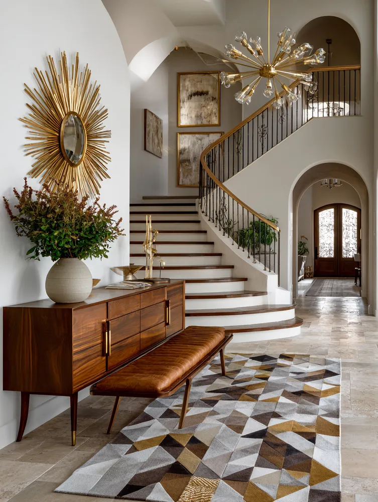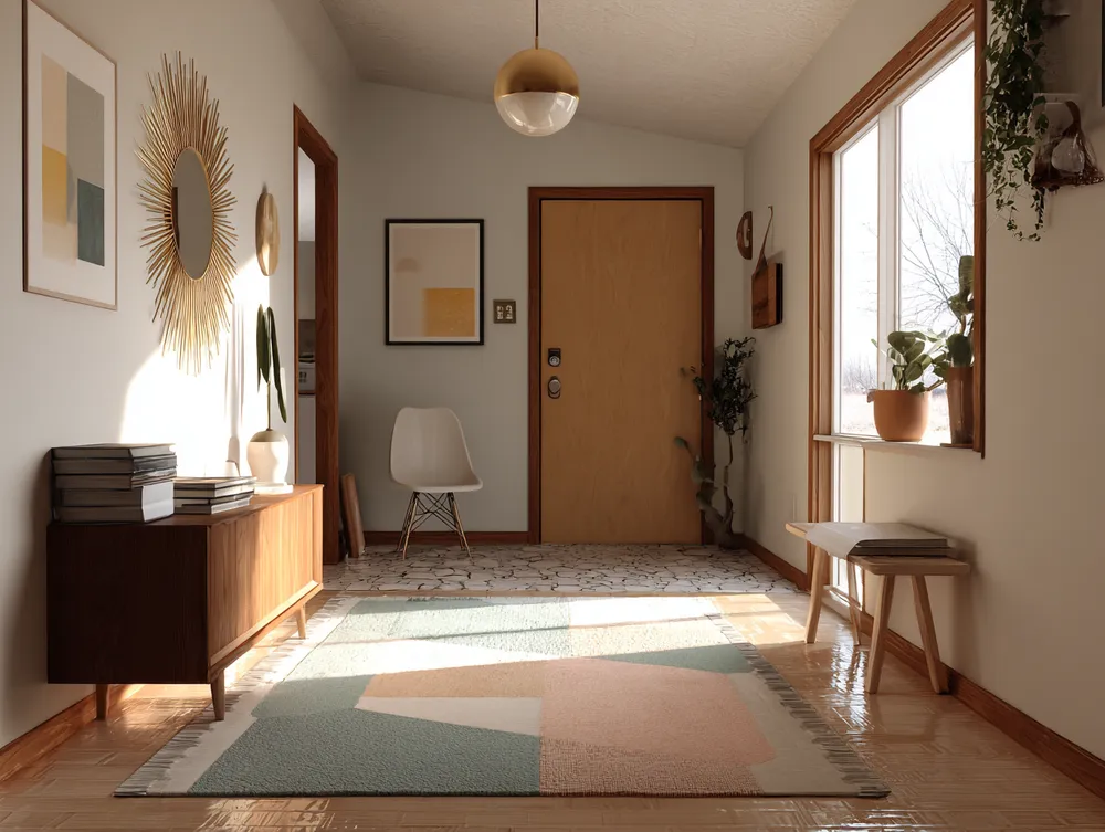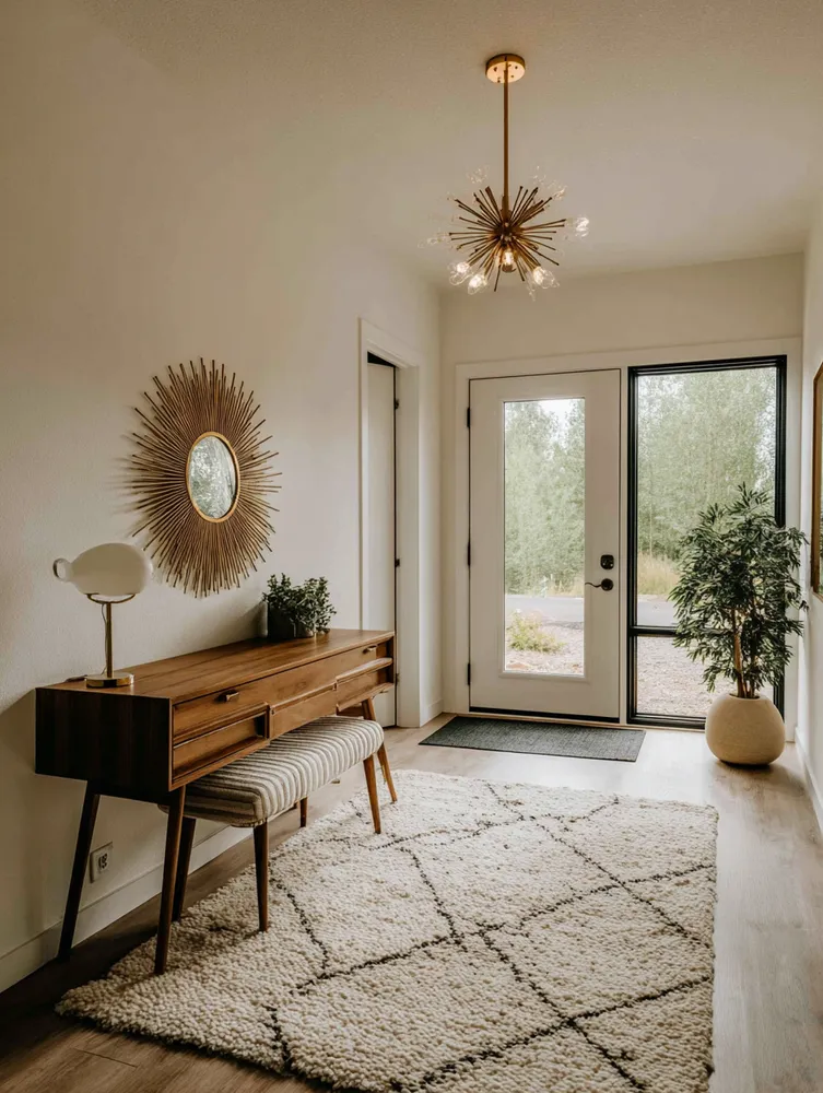 Clean lines and functional pieces are key here. A well-placed vintage rug can add warmth and color. It’s all about creating an inviting and stylish first impression. 🚪