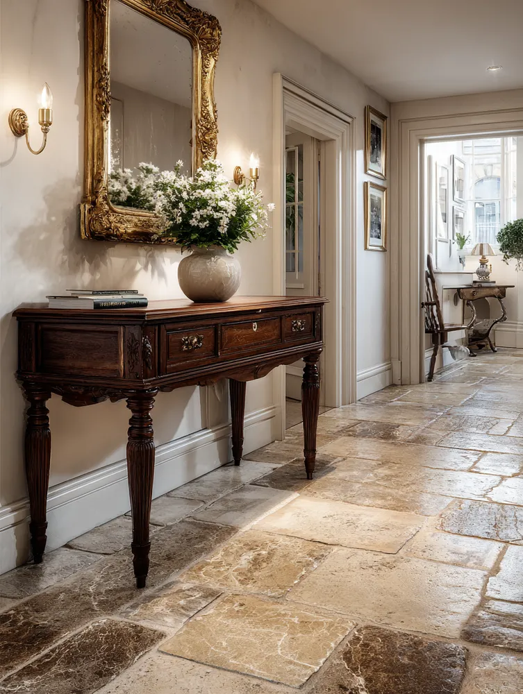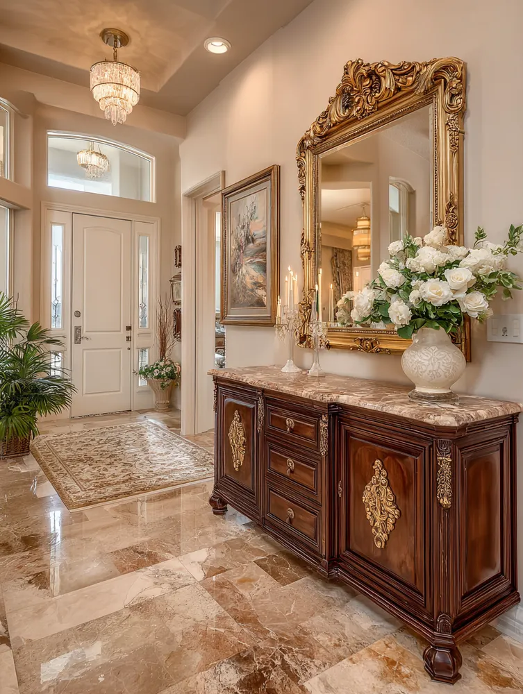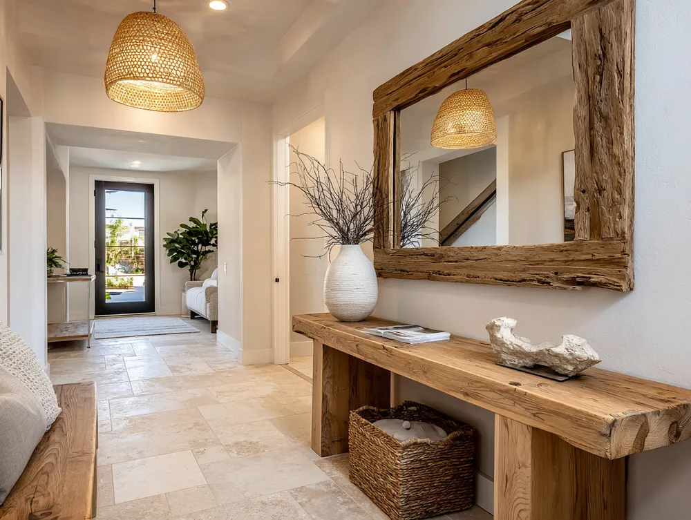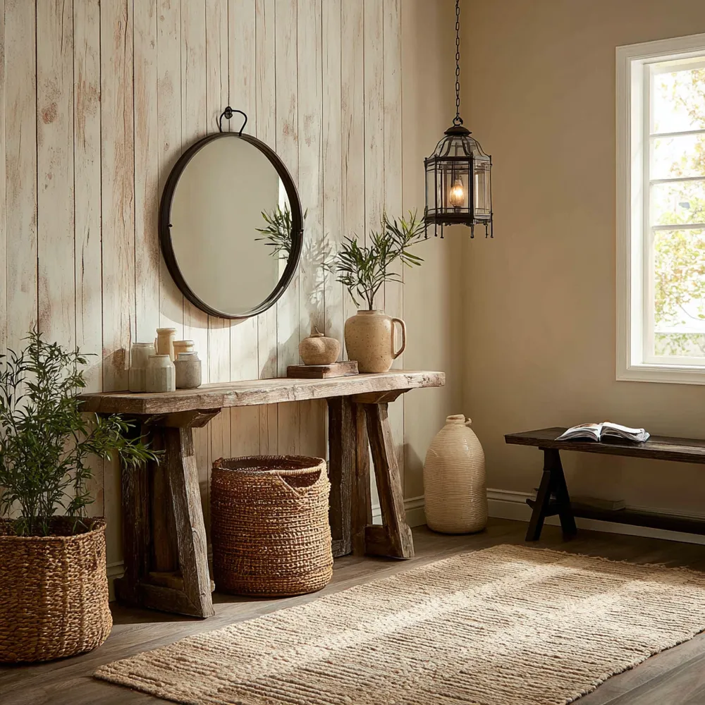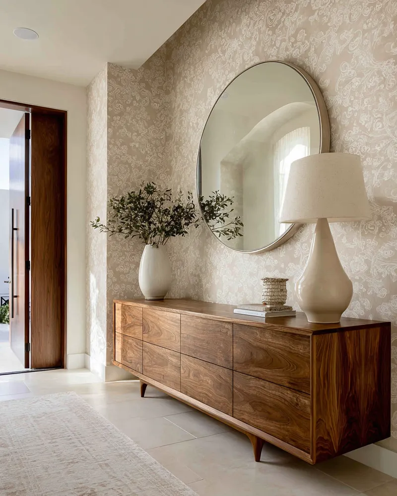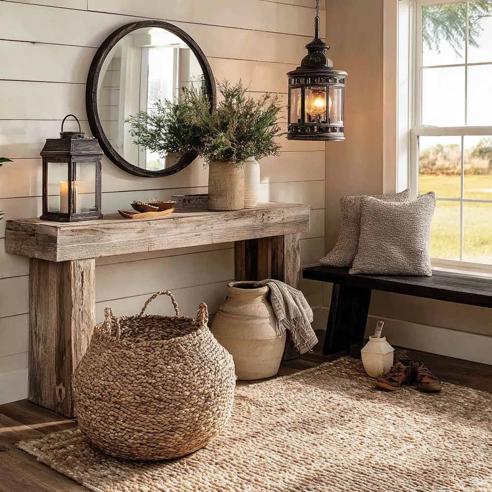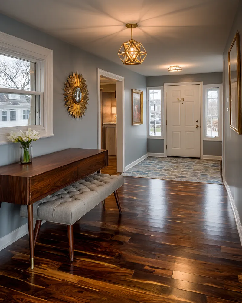 Clean lines and functional pieces are key here. A well-placed vintage rug can add warmth and color. It’s all about creating an inviting and stylish first impression. 🚪