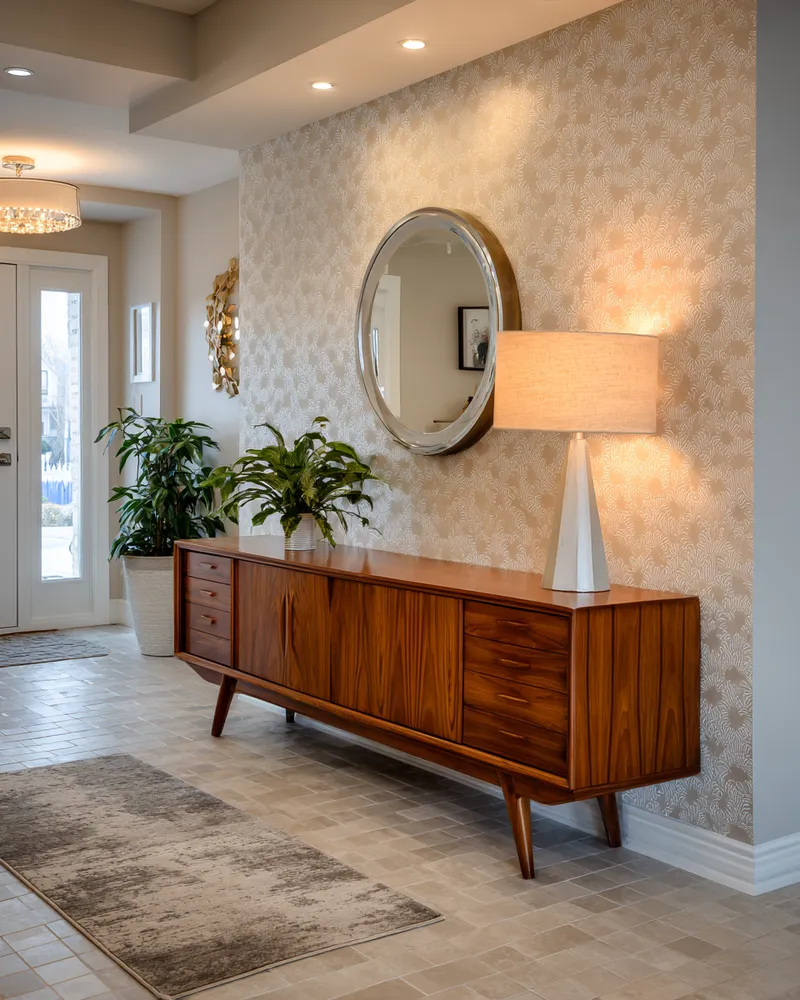 Make a statement the moment you step inside with a Midcentury Modern entryway. It sets the tone for your entire home! ✨