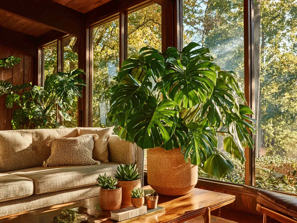 Save this for your biophilic design inspiration! #midcenturymodern#indoorplants#biophilicdesign#interiordecor#homeliving#mcinspired#plantstyling#natureindoors#designinspiration#greendecor