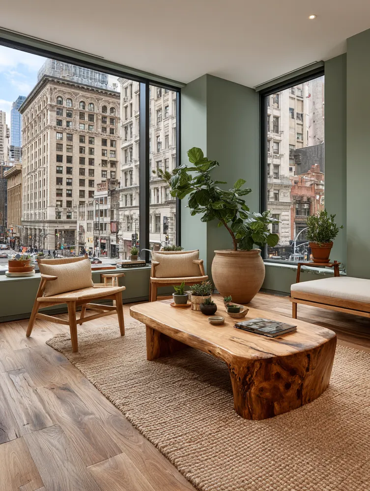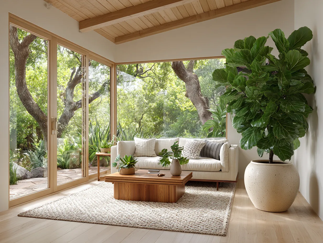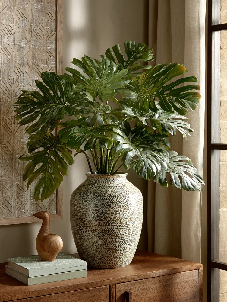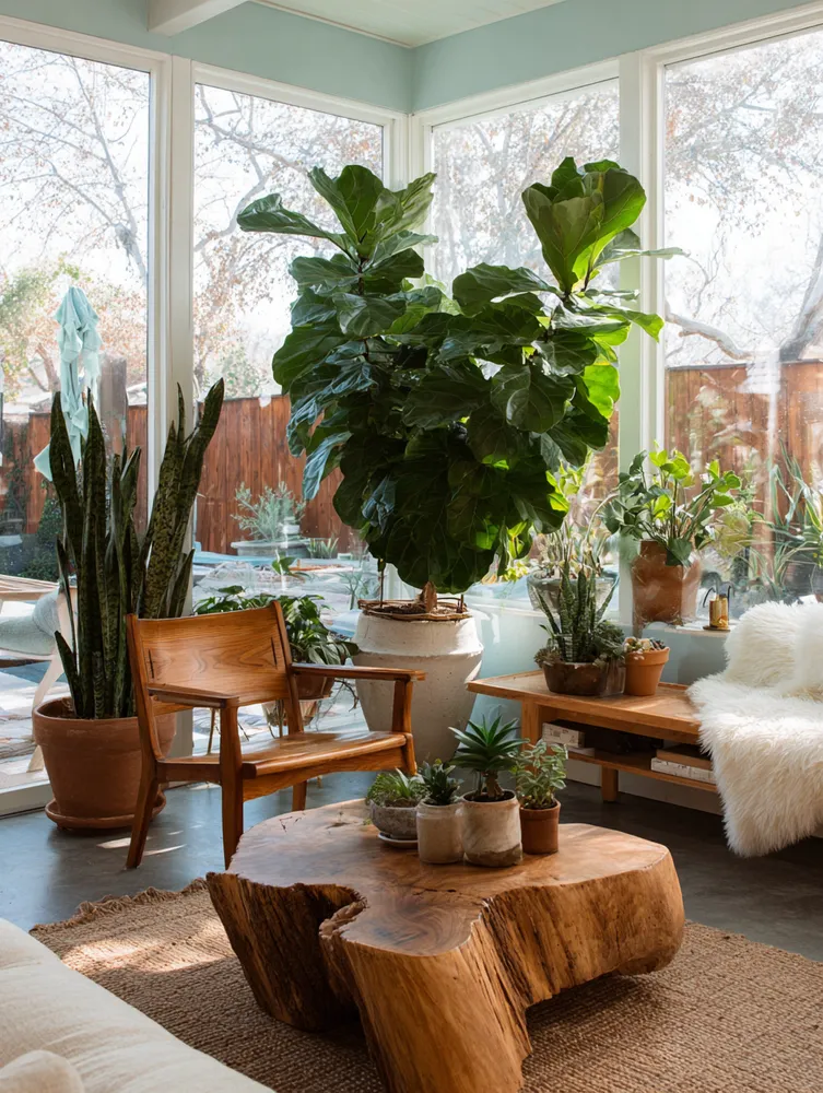 Incorporate potted plants on shelves, tables, and floors to add life, color, and a sense of freshness. Think fiddle-leaf figs, snake plants, or lush ferns.