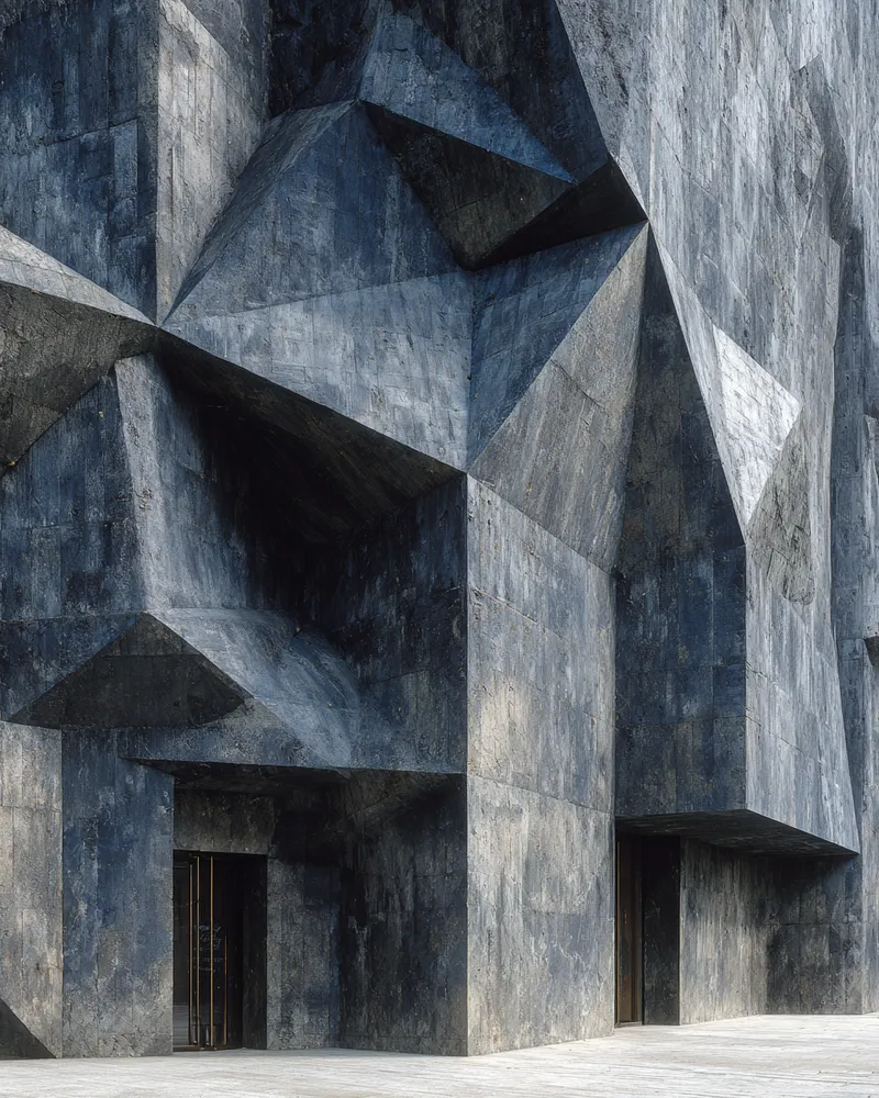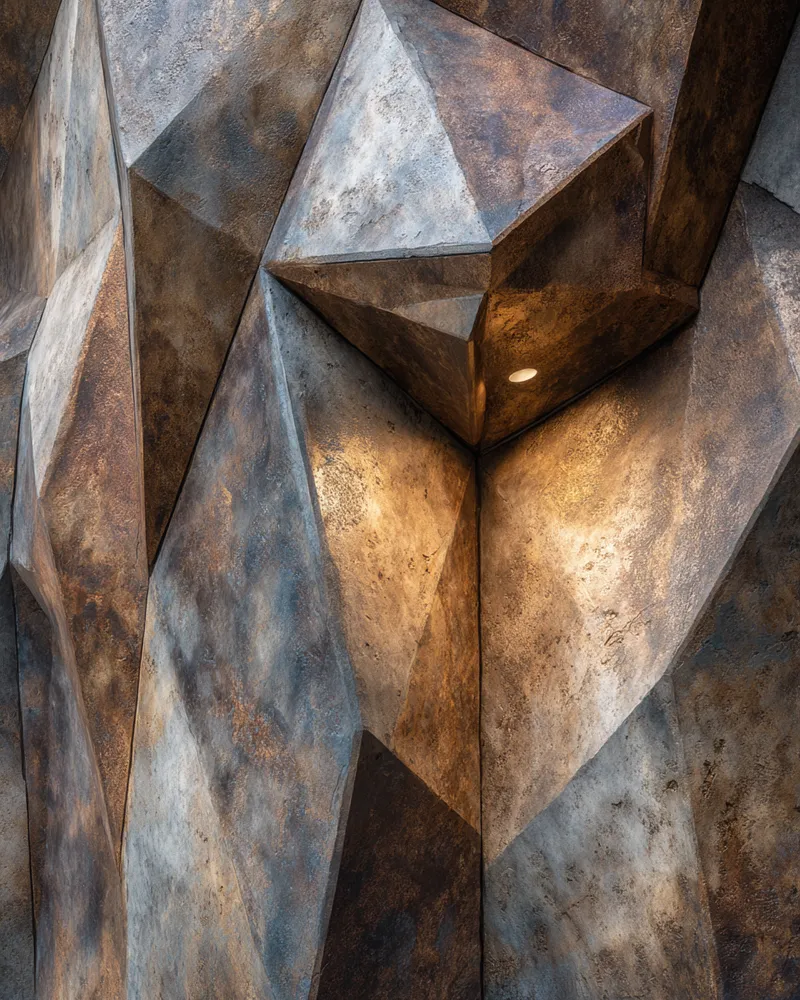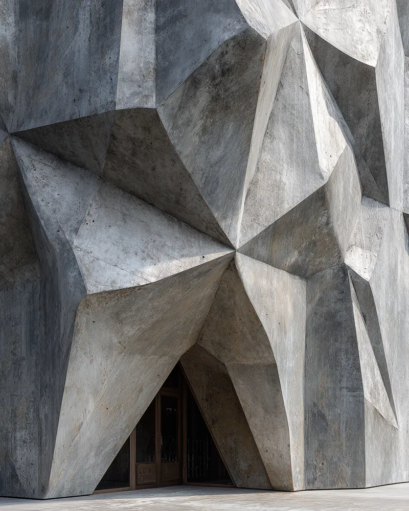 Modern architecture frequently embraces the unexpected by employing fractured, shard-like geometric elements in its facades. This creates a dynamic visual experience, breaking away from monolithic forms. 🔶